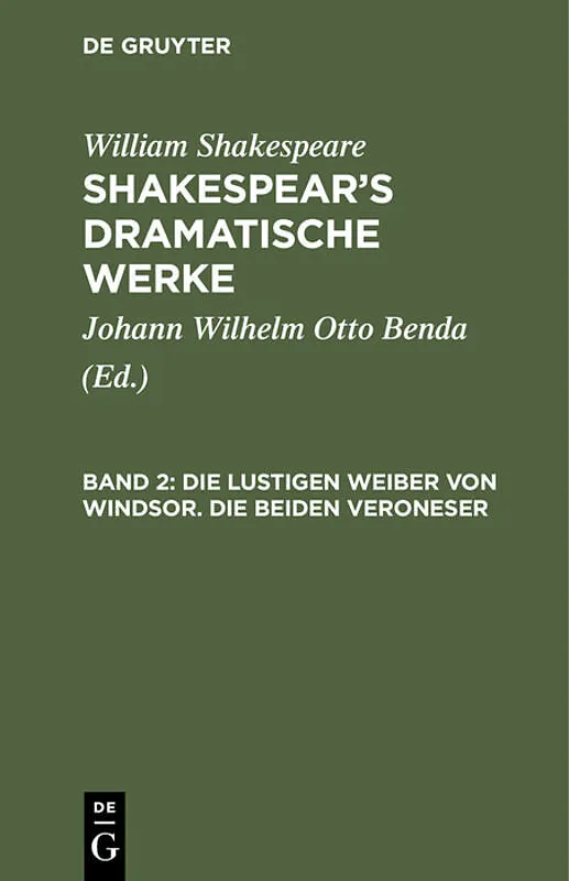 Frontmatter -- Die lustigen Weiber von Windsor -- Handelnde Personen -- Erster Aufzug -- Zweiter Aufzug -- Dritter Auszug -- Vierter Aufzug -- Fünfter Aufzug -- Anmerkungen -- Abhandlung über das Lustspiel: die lustigen Weiber von Windsor -- Die beiden Verones...
