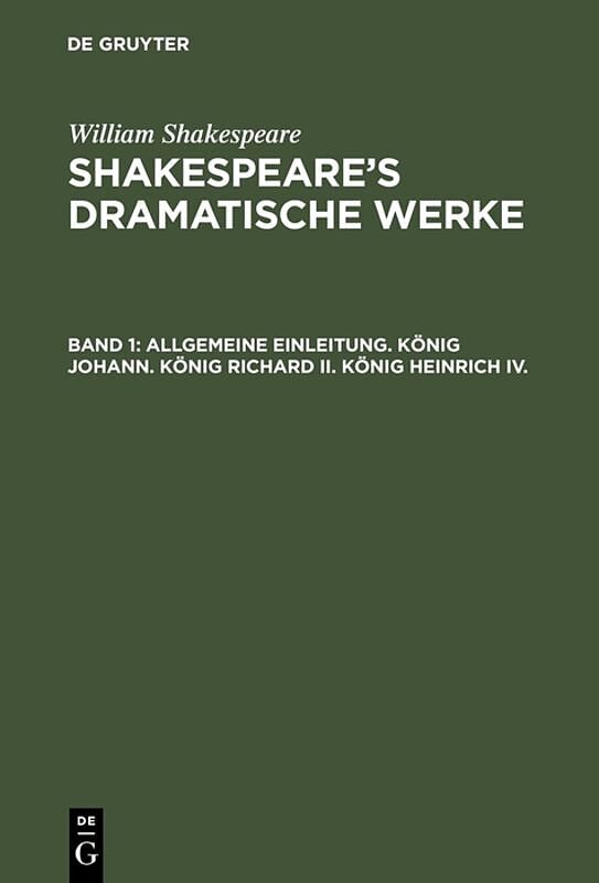 Dieser Titel, "Allgemeine Einleitung. König Johann. König Richard II. König Heinrich IV.", ist eine wissenschaftliche Publikation, erschienen bei De Gruyter Brill. Ausführliche Beschreibung, Inhaltsverzeichnis und weitere Angaben finden Sie auf der Verlagswebs...