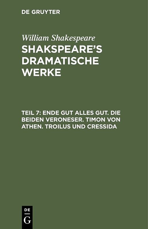 Dieser Titel, "Ende gut alles gut. Die beiden Veroneser. Timon von Athen. Troilus und Cressida", ist eine wissenschaftliche Publikation, erschienen bei De Gruyter Brill. Ausführliche Beschreibung, Inhaltsverzeichnis und weitere Angaben finden Sie auf der Verla...