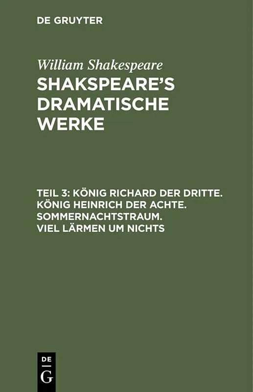 Frontmatter -- Vorrede zum dritten Theil -- König Richard der Dritte -- König Heinrich der Achte -- Ein Sommernachtstraum -- Viel Lärmen um Nichts -- Anmerkungen zum ersten Bande -- Anmerkungen zum zweyten Bande -- Anmerkungen zum dritten Band