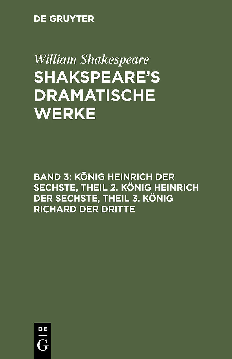 Dieser Titel, "König Heinrich der Sechste, Theil 2. König Heinrich der Sechste, Theil 3. König Richard der Dritte", ist eine wissenschaftliche Publikation, erschienen bei De Gruyter Brill. Ausführliche Beschreibung, Inhaltsverzeichnis und weitere Angaben finde...