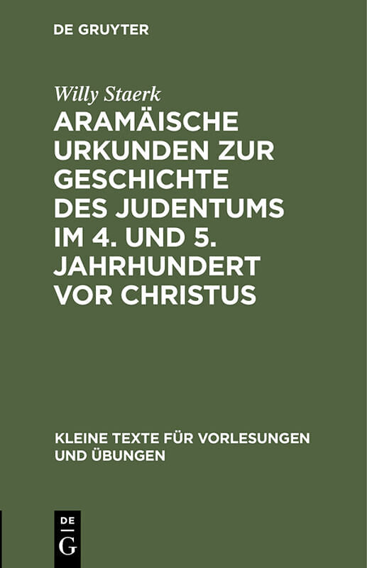 Keine ausführliche Beschreibung für "Aramäische Urkunden zur Geschichte des Judentums im 4. und 5. Jahrhundert vor Christus" verfügbar. Zusammenfassung Frontmatter -- ARAMAEISCHE URKUNDEN ZUR GESCHICHTE DES JUDENTUMS IM VI UND Y JAHRHUNDERT VOR CHR....