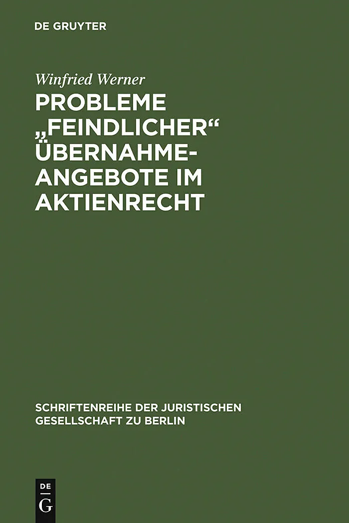 Dieser Titel, "Probleme "feindlicher" Übernahmeangebote im Aktienrecht", ist eine wissenschaftliche Publikation, erschienen bei De Gruyter Brill. Ausführliche Beschreibung, Inhaltsverzeichnis und weitere Angaben finden Sie auf der Verlagswebsite: https://www.d...