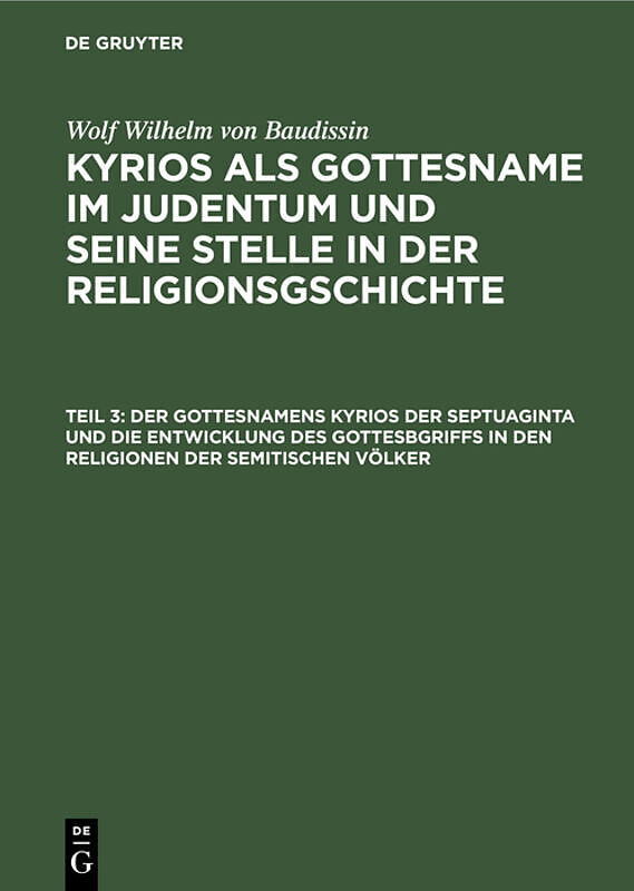 Frontmatter -- Inhalt -- Druckfehler -- DRITTER TEIL. Der Gottesname Kyrios der Septuaginta und die Entwicklung des Gottesbegrifls in den Religionen der semitischen Volker -- ERSTE ABTEILUNG. Die Verbreitung der Auffassung der Gottheit als des Herrn bei den Se...