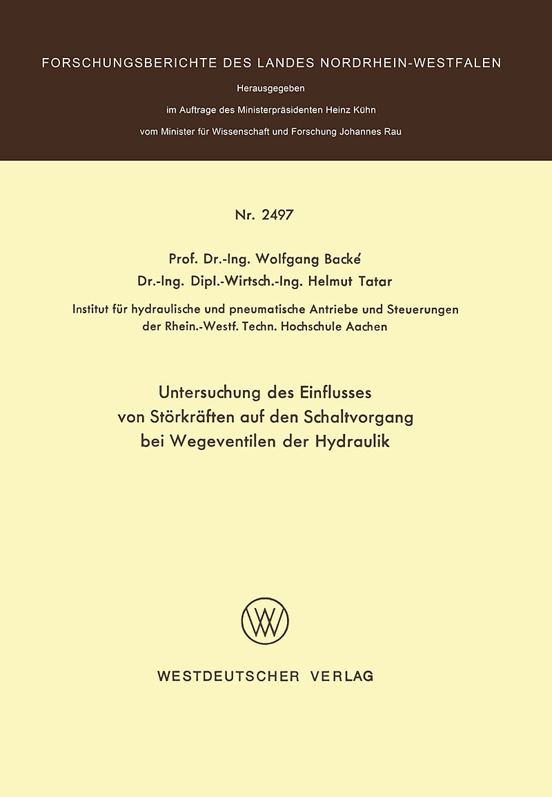Inhalt 1. Einleitung.- 1.1 Stand der Technik.- 1.2 Aufgabenstellung.- 1.3 Bei Wegeventilen auftretende Störkräfte.- 2. Systematik der Strömungskräfte bei verschiedenen Wegeventil-Schaltungstypen.- 2.1 Berechnung der stationären Strömungskraft an einer Steuerka...