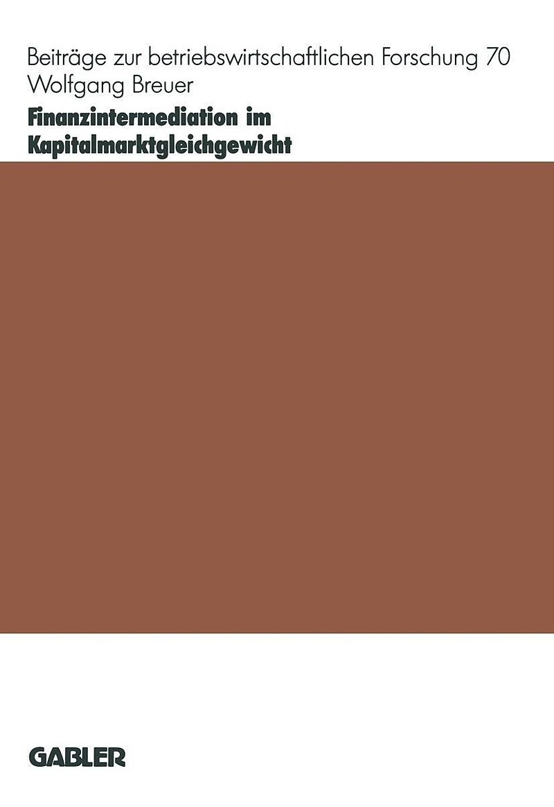 Wolfgang Breuer bietet einen umfassenden Überblick über den Stand der Theorie zur Existenzerklärung von Finanzintermediären. Inhalt 1. Kapitel: Grundlagen.- 1 Begriffliches: Intermediation und Finanzierungstitel.- 2 Das (neo-) klassische CAPM Kein Platz für F...