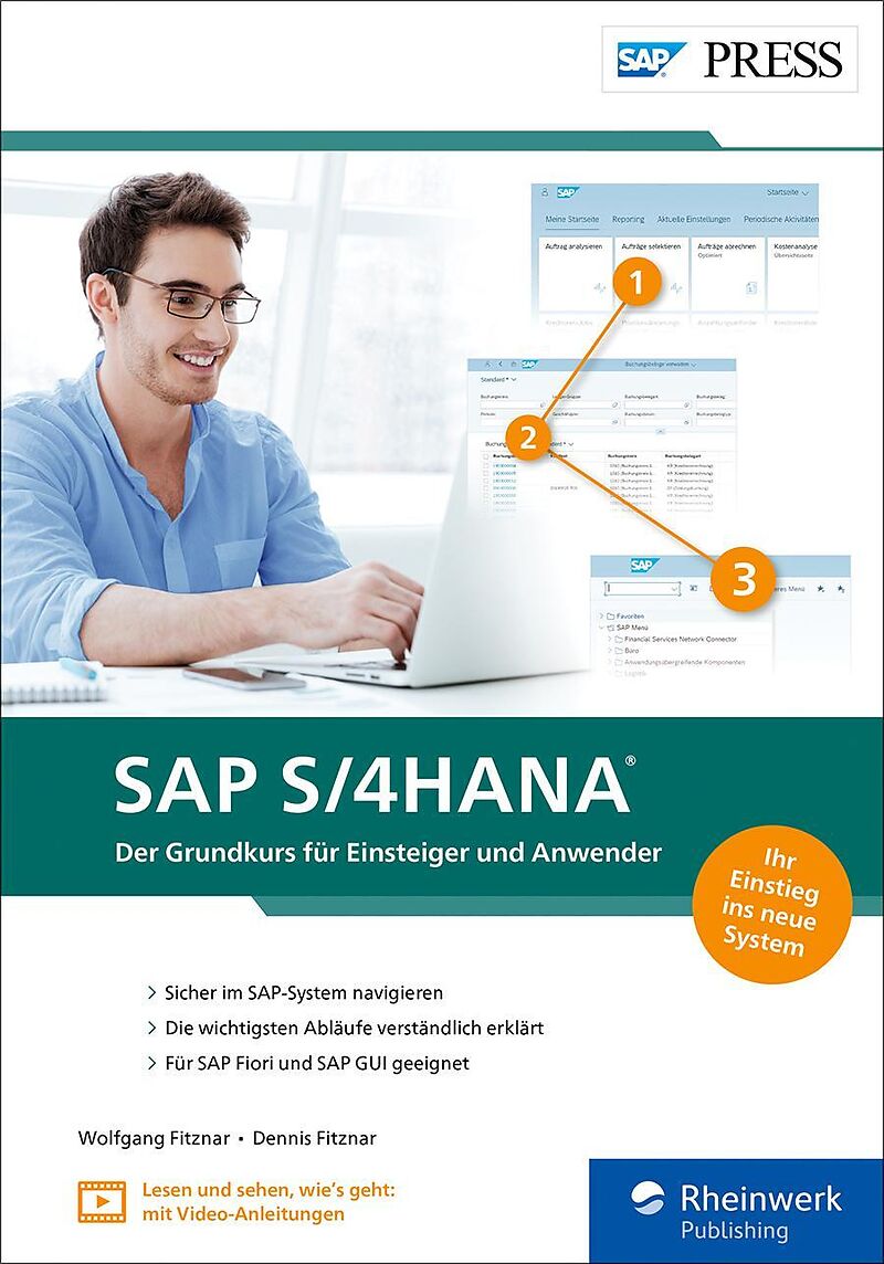 Lernen Sie Ihr SAP-System kennen! Dieses Buch begleitet Sie von Anfang an und zeigt Ihnen, wie Sie die Funktionen von SAP S/4HANA in Ihrer täglichen Arbeit nutzen. Anhand anschaulicher Praxisbeispiele erklären Ihnen die Autoren die wichtigsten Module und den E...Lernen Sie Ihr SAP-System kennen! Dieses Buch begleitet Sie von Anfang an und zeigt Ihnen, wie Sie die Funktionen von SAP S/4HANA in Ihrer täglichen Arbeit nutzen. Anhand anschaulicher Praxisbeispiele erklären Ihnen die Autoren die wichtigsten Module und den Einsatz der Benutzeroberflächen SAP Fiori und SAP GUI. Dieses Buch ist nicht zuletzt dank der zugehörigen Video-Tutorials zu den wichtigsten Arbeitsschritten bestens für den sicheren Einstieg in SAP geeignet. Aus dem Inhalt: Stammdaten und Belege im SAP-System SAP Fiori und SAP GUI Grundlagen der Bedienung An- und abmelden Daten anzeigen, erfassen und pflegen Reporting Die Benutzeroberfläche personalisieren Layouts anpassen Fallbeispiele aus der Materialwirtschaft Fallbeispiele aus dem Vertrieb Fallbeispiele aus dem Finanzwesen