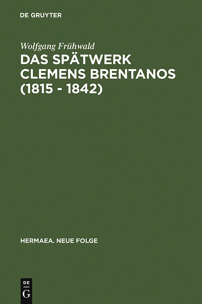 Dieser Titel, "Das Spätwerk Clemens Brentanos (1815 - 1842)", ist eine wissenschaftliche Publikation, erschienen bei De Gruyter Brill. Ausführliche Beschreibung, Inhaltsverzeichnis und weitere Angaben finden Sie auf der Verlagswebsite: https://www.degruyterbri...