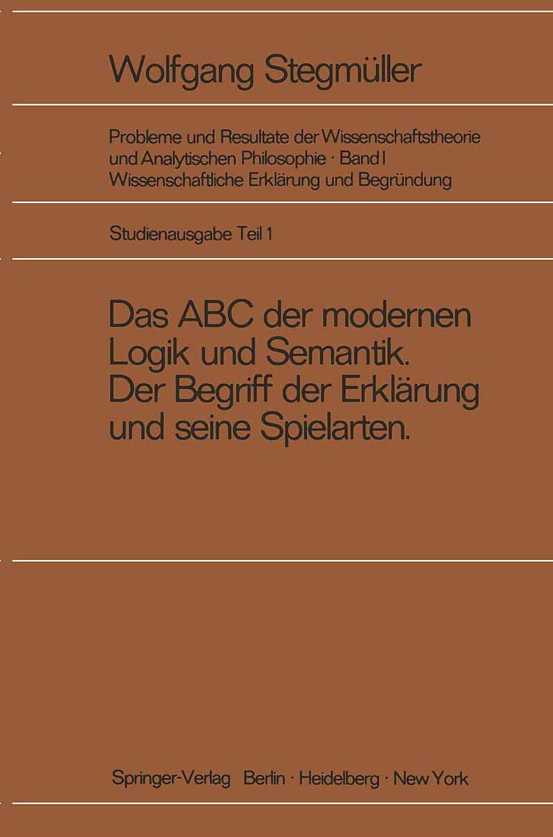 Inhalt 0. Das ABC der modernen Logik und Semantik.- 1. Aufgaben und Ziele der modernen Logik.- 2. Sätze, schematische Buchstaben und logische Zeichen.- 3. Umgangssprache und symbolische Sprache.- 4. Objektsprache und Metasprache. Pragmatik, Semantik, Syntax.- ...