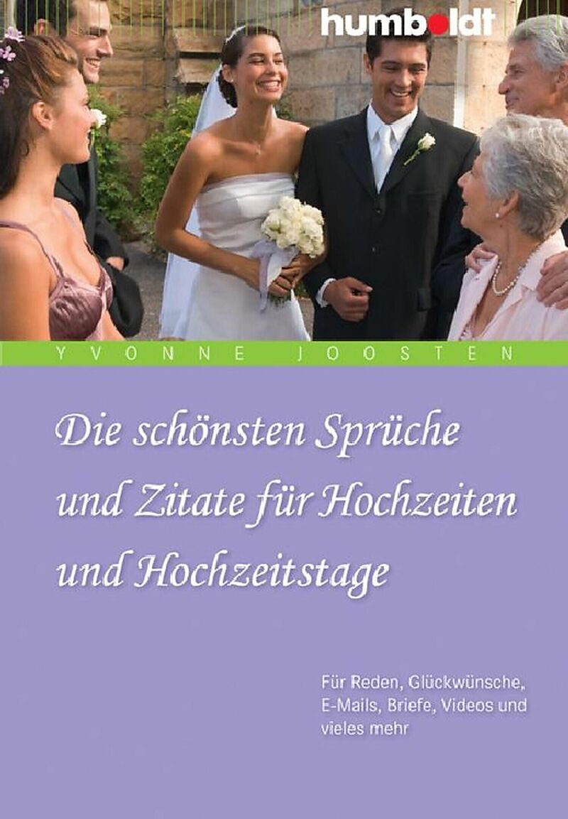 Rund um die Themen Hochzeit, Liebe, Ehe, Glück und Familie hat Yvonne Joosten viele neue Sprüche zusammengetragen. Das vorliegende Buch ist eine Sammlung kluger und witziger Aussprüche von Schauspielern, Philosophen, Politikern und Dichtern. Eine echte Fundgru...