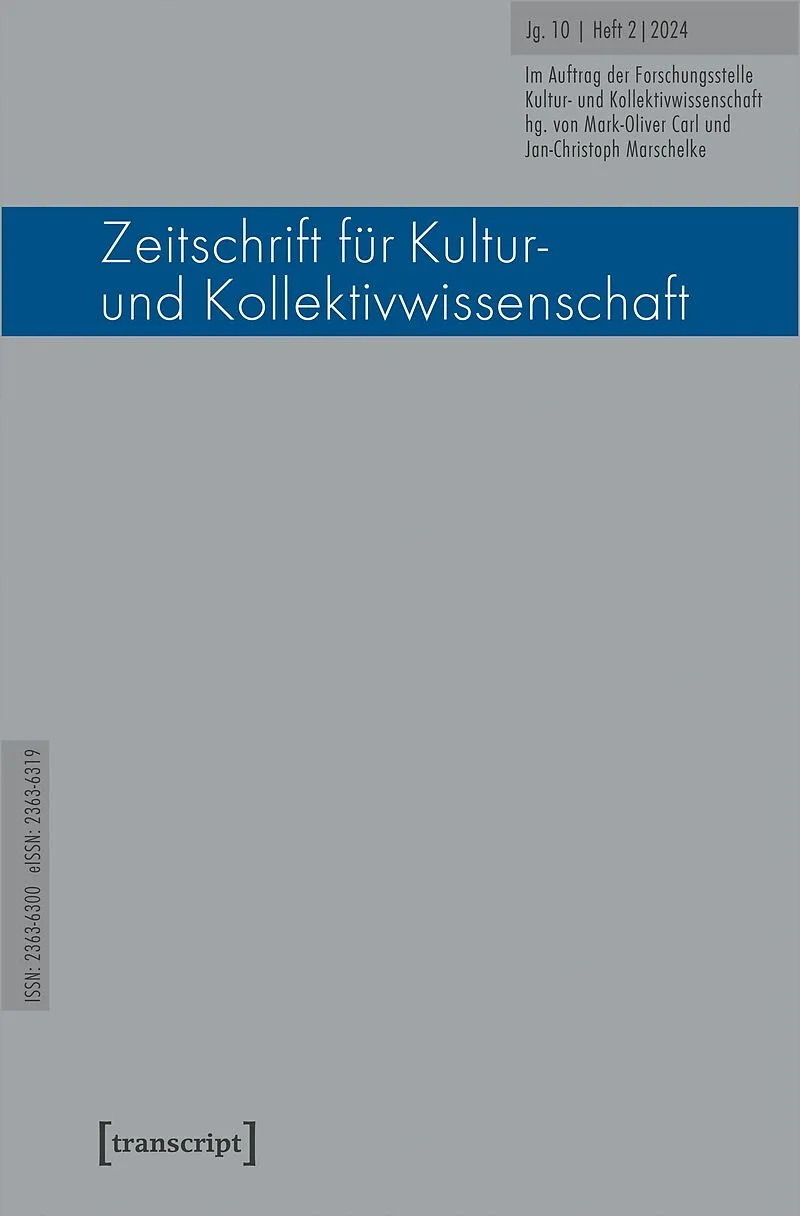Heft 10/2 fragt nach den Verbindungen von Schemata und Kollektivität und macht beide Theorieansätze füreinander fruchtbar. Die »Zeitschrift für Kultur- und Kollektivwissenschaft« ist ein Forum, das auf der Grundlage der Kulturwissenschaft eine Kollektivwissens...