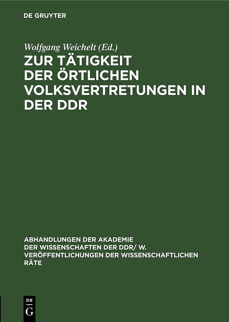 Dieser Titel, "Zur Tätigkeit der örtlichen Volksvertretungen in der DDR", ist eine wissenschaftliche Publikation, erschienen bei De Gruyter Brill. Ausführliche Beschreibung, Inhaltsverzeichnis und weitere Angaben finden Sie auf der Verlagswebsite: https://www....