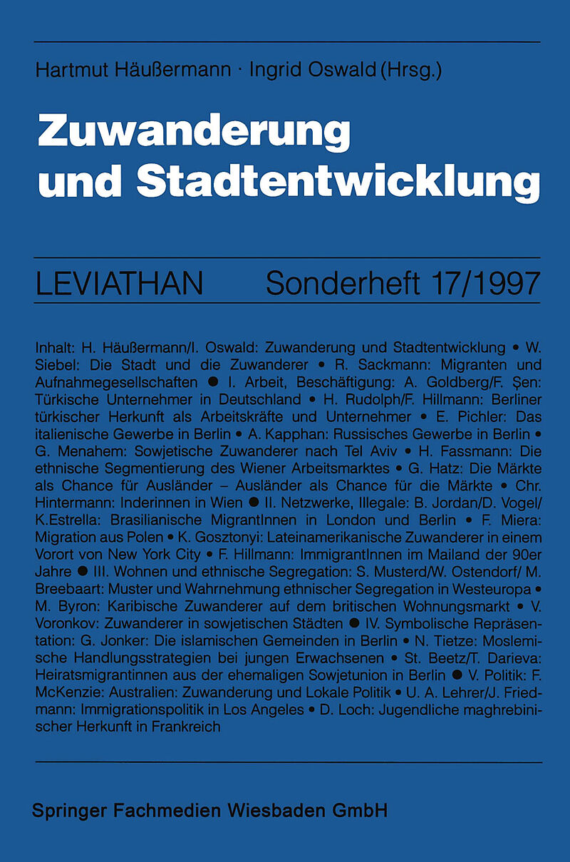 Stabilität und Wachstum von Großstädten hängen seit jeher von der Zuwanderung ab. Kamen früher die Zuwanderer "vom Land", so kommen sie heute und zukünftig aus dem Ausland. Die zivilisatorische Bedeutung der Stadtkultur besteht darin, die soziale und kulturel...