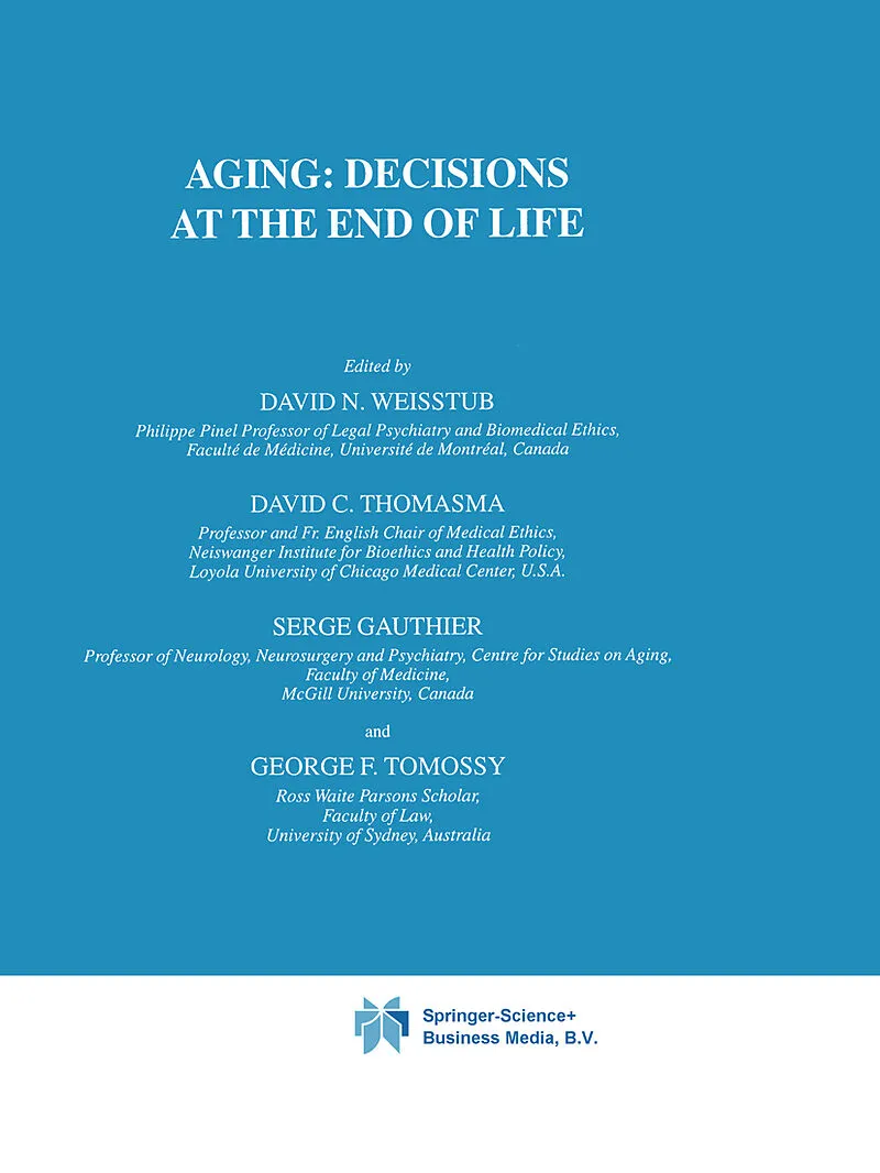 Decisions at the End of Life is the last volume in a trilogy on Aging conceived for the International Library of Ethics, Law, and the New Medicine. Leading scholars from a range of disciplines examine some of the most emotive topics in the study of aging: ass...