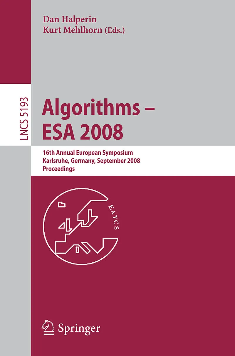 This book constitutes the refereed proceedings of the 16th Annual European Symposium on Algorithms, ESA 2008, held in Karlsruhe, Germany, in September 2008 in the context of the combined conference ALGO 2008. The 67 revised full papers presented together with...This book constitutes the refereed proceedings of the 16th Annual European Symposium on Algorithms, ESA 2008, held in Karlsruhe, Germany, in September 2008 in the context of the combined conference ALGO 2008.