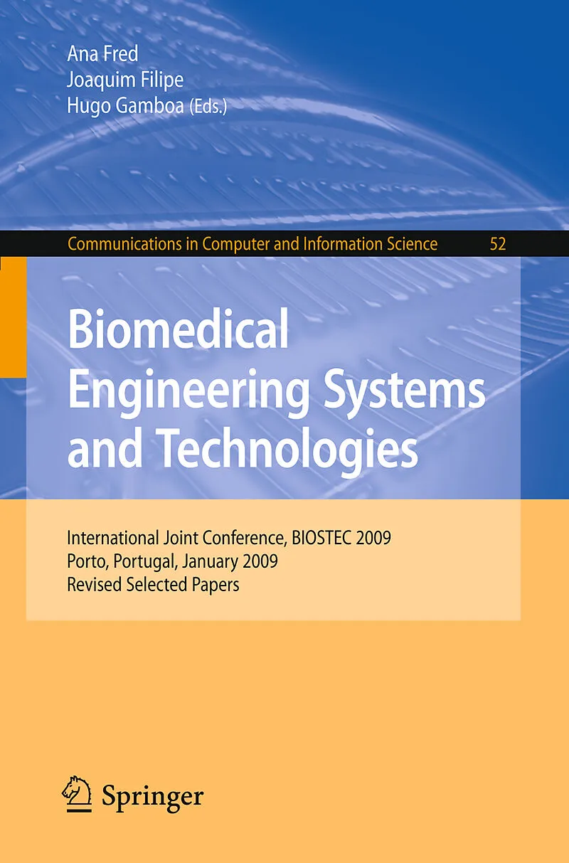 This book contains the best papers of the Second International Joint Conference on Biomedical Engineering Systems and Technologies (BIOSTEC 2009), organized by the Institute for Systems and Technologies of Information Control and Communi- tion (INSTICC), tech...