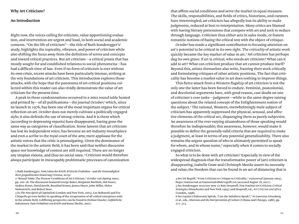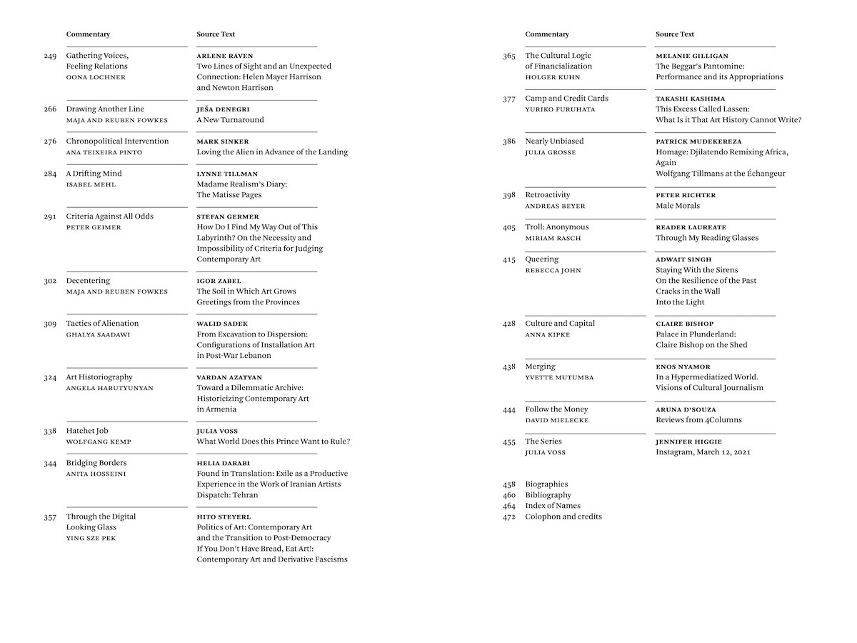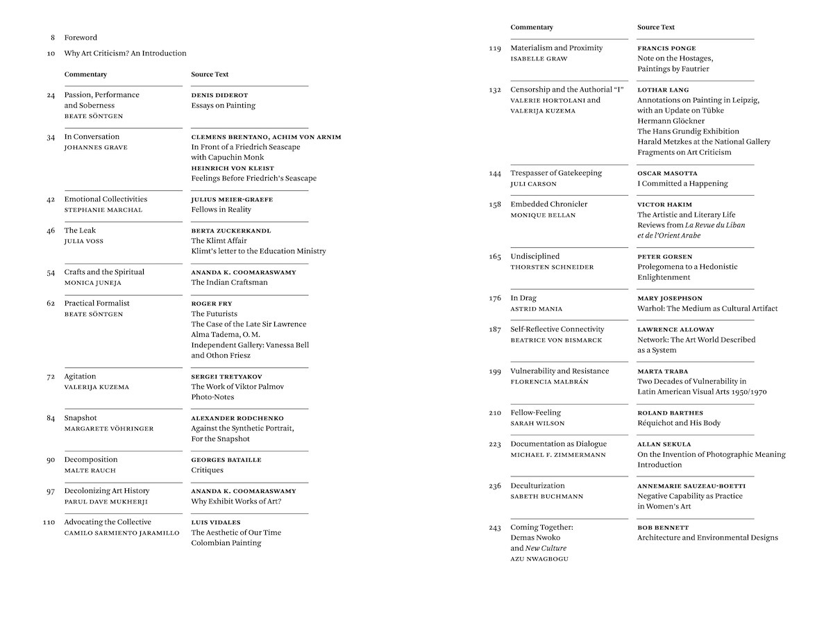 Compendium of art criticism - Plurality of voices and styles of writing - With short comments on each art critique