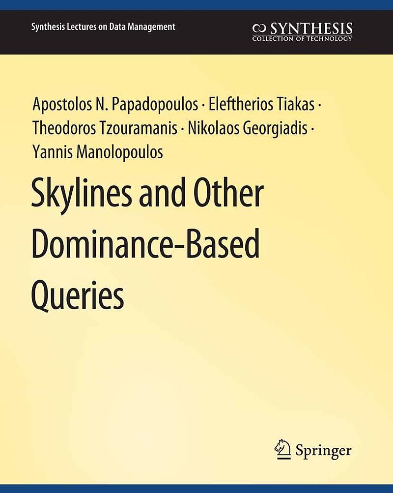 This book is a gentle introduction to dominance-based query processing techniques and their applications. The book aims to present fundamental as well as some advanced issues in the area in a precise, but easy-to-follow, manner. Dominance is an intuitive conc...This book is a gentle introduction to dominance-based query processing techniques and their applications. The book aims to present fundamental as well as some advanced issues in the area in a precise, but easy-to-follow, manner. Dominance is an intuitive concept that can be used in many different ways in diverse application domains. The concept of dominance is based on the values of the attributes of each object. An object dominates another object if is better than . This goodness criterion may differ from one user to another. However, all decisions boil down to the minimization or maximization of attribute values. In this book, we will explore algorithms and applications related to dominance-based query processing. The concept of dominance has a long history in finance and multi-criteria optimization. However, the introduction of the concept to the database community in 2001 inspired many researchers to contribute to the area. Therefore, many algorithmic techniques have been proposed for the efficient processing of dominance-based queries, such as skyline queries, -dominant queries, and top- dominating queries, just to name a few.