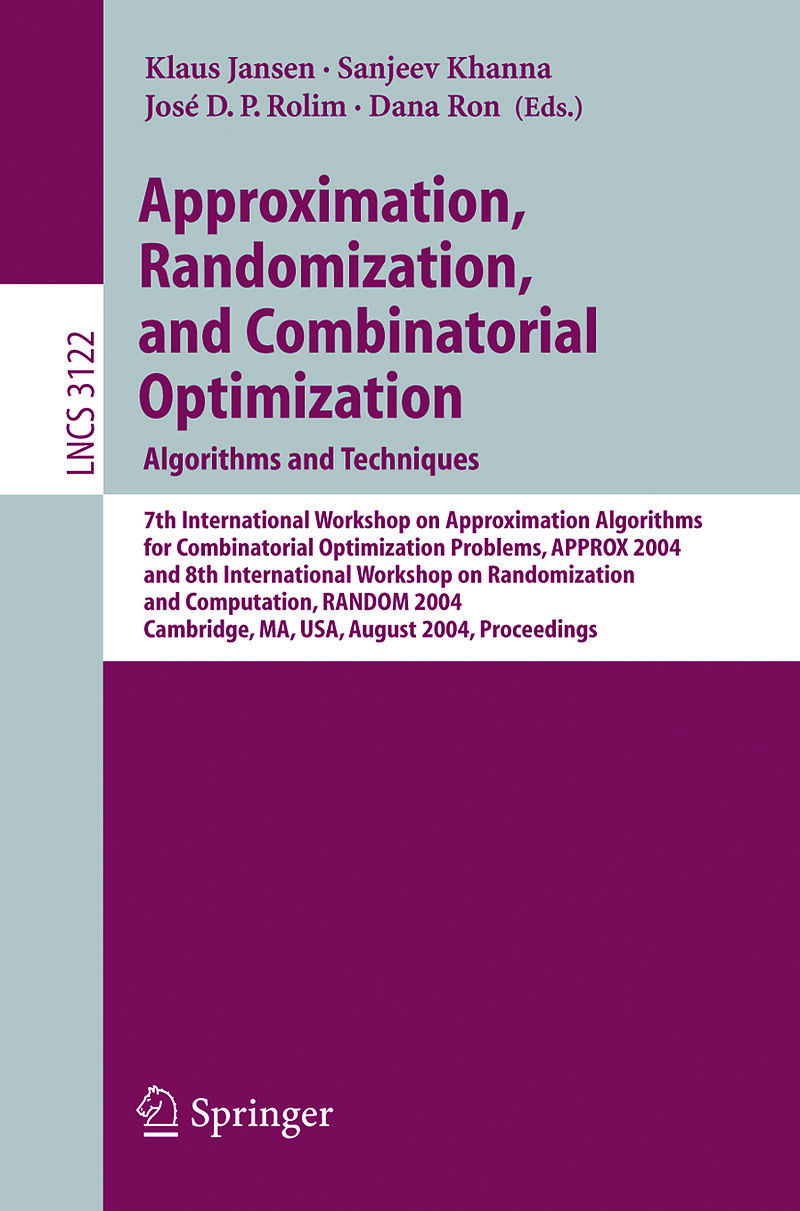 Inhalt Contributed Talks of APPROX.- Designing Networks with Existing Traffic to Support Fast Restoration.- Simultaneous Source Location.- Computationally-Feasible Truthful Auctions for Convex Bundles.- Randomized Approximation Algorithms for Set Multicover Pr...