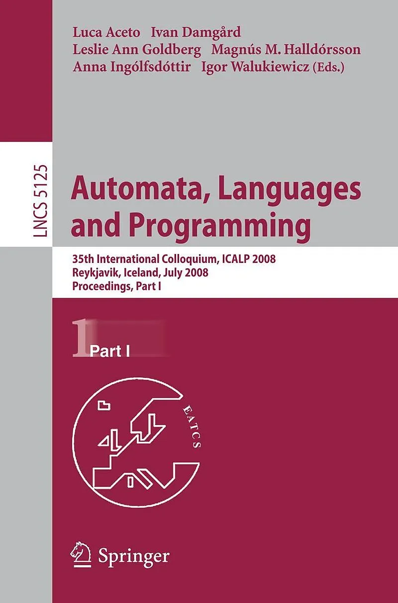 The two-volume set LNCS 5125 and LNCS 5126 constitutes the refereed proceedings of the 35th International Colloquium on Automata, Languages and Programming, ICALP 2008, held in Reykjavik, Iceland, in July 2008. The 126 revised full papers presented together w...The two-volume set LNCS 5125 and LNCS 5126 constitutes the refereed proceedings of the 35th International Colloquium on Automata, Languages and Programming, ICALP 2008, held in Reykjavik, Iceland, in July 2008.