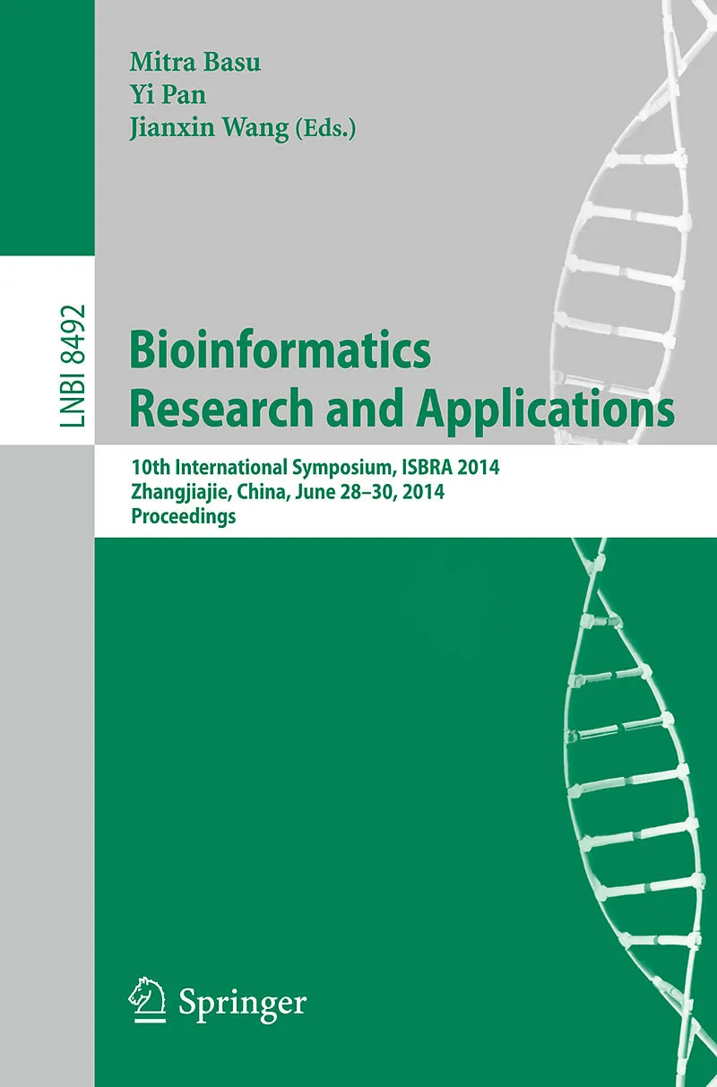Predicting Disease Risks Using Feature Selection Based on Random Forest and Support Vector Machine.- Phylogenetic Bias in the Likelihood Method Caused by Missing Data Coupled with Among-Site Rate Variation: An Analytical Approach.- An Eigen decomposition Method for Protein Structure Alignment.- Functional Interplay between Hemagglutinin and Neuraminidase of Pandemic 2009 H1N1 from the Perspective of Virus Evolution.- Predicting Protein Submitochondrial Locations Using a K-Nearest Neighbors Method Based on the Bit-Score Weighted Euclidean Distance.- Algorithms Implemented for Cancer Gene Searching and Classifications.- Dysregulated microRNA Profile in HeLa Cell Lines Induced by Lupeol.- A Simulation for Proportional Biological Operational Mu-Circuit.- Computational Prediction of Human Saliva-Secreted Proteins.- A Parallel Scheme for Three-Dimensional Reconstruction in Large-Field Electron Tomography.- An Improved Correlation Method Based on Rotation Invariant Feature for Automatic Particle Selection.- An Effective Algorithm for Peptide de novo Sequencing from Mixture MS/MS Spectra.- Identifying Spurious Interactions in the Protein-Protein Interaction Networks Using Local Similarity Preserving Embedding.- Multiple RNA Interaction with Sub-optimal Solutions.- Application of Consensus String Matching in the Diagnosis of Allelic Heterogeneity (Extended Abstract).- Continuous Time Bayesian Networks for Gene Network Reconstruction: A Comparative Study on Time Course Data.- Drug Target Identification Based on Structural Output Controllability of Complex Networks.- NovoGMET: De Novo Peptide Sequencing Using Graphs with Multiple Edge Types (GMET) for ETD/ECD Spectra.- Duplication Cost Diameters.- Computational Identification of De-Centric Genetic Regulatory Relationships from Functional Genomic Data.- Classification of Mutations by Functional Impact Type: Gain of Function, Loss of Function and Switch of Function.- Network Analysis of Human Disease Comorbidity Patterns Based on Large-Scale Data Mining.- Identification of Essential Proteins by Using Complexes and Interaction Network.- GenoScan: Genomic Scanner for Putative miRNA Precursors.- Searching SNP Combinations Related to Evolutionary Information of Human Populations on HapMap Data.- 2D Pharmacophore Query Generation.- Structure-Based Analysis of Protein Binding Pockets Using Von Neumann Entropy.- A New Mathematical Model for Inbreeding Depression in Large Populations.- dSpliceType: A Multivariate Model for Detecting Various Types of Differential Splicing Events Using RNA-Seq.- Conformational Transitions and Principal Geodesic Analysis on the Positive Semidefinite Matrix Manifold.- Joint Analysis of Functional and Phylogenetic Composition for Human Microbiome Data.- schematikon: Detailed Sequence-Structure Relationships from Mining a Non-redundant Protein Structure Database (Extended Abstract).- PNImodeler: Web Server for Inferring Protein Binding Nucleotides from Sequence Data.- A MCI Decision Support System Based on Ontology.- Context Similarity Based Feature Selection Methods for Protein Interaction Article Classification.- Network Propagation Reveals Novel Genetic Features Predicting Drug Response of Cancer Cell Lines.- Splice Site Prediction Using Support Vector Machine with Markov Model and Codon Information.- Exploiting Topic Modeling to Boost Metagenomic Sequences Binning.- Network-Based Method for Identifying Overlapping Mutated Driver Pathways in Cancer.- Completing a Bacterial Genome with in silico and Wet Lab Approaches.- Protein Function Prediction: A Global Prediction Method with Multiple Data Sources.- A microRNA-Gene Network in Ovarian Cancer from Genome-Wide QTL Analysis.- K-Profiles Nonlinear Clustering.- Estrogen Induced RNA Polymerase II Stalling in Breast Cancer Cell Line MCF7.- A Knowledge-Driven Approach in Constructing a Large-Scale Drug-Side Effect Relationship Knowledge Base for Computational Drug Discovery.- Systems Biology Approach to Understand Seed Composition.- Prediction of the Cooperative cis-regulatory Elements for Broadly Expressed Neuronal Genes in Caenorhabditis Elegans.- Improving the Mapping of the Smith-Waterman Sequence Database Search Algorithm onto CUDA GPUs.- VFP: A Visual Tool for Predicting Gene-Fusion Base on Analyzing Single-end RNA-Sequence.- A Novel Method for Identifying Essential Proteins from Active PPI Networks.- RAUR: Re-alignment of Unmapped Reads with Base Quality Score.- PIGS: Improved Estimates of Identity-by-Descent Probabilities by Probabilistic IBD Graph Sampling.- Clustering PPI Data through Improved Synchronization-Based Hierarchical Clustering Method.- Order Decay in Transcription Regulation in Type 1 Diabetes.- Simulated Regression Algorithm for Transcriptome Quantification.