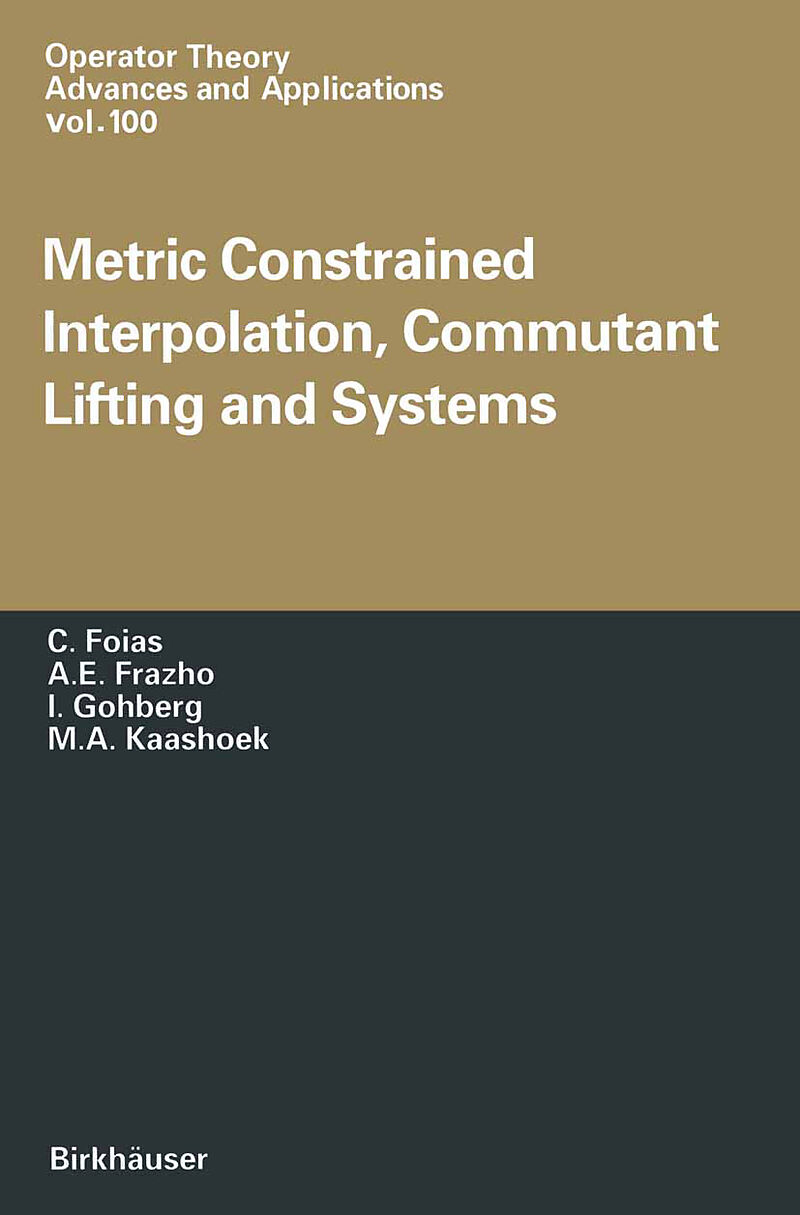 A Interpolation And Time-Invariant Systems.- I. Interpolation Problems For Operator-Valued Functions.- 1.1. Preliminaries About Notation And Terminology.- 1.2. Nevanlinna-Pick Interpolation.- 1.3. Tangential Nevanlinna-Pick Interpolation.- 1.4. Controllability Operators And Interpolation.- 1.5. Tangential Hermite-Fejer Interpolation.- 1.6. The Nehari Extension Problem.- 1.7. Sarason Interpolation.- 1.8. Nevanlinna-Pick Interpolation Viewed As A Sarason Problem.- 1.9. Two-Sided Nudelman Interpolation.- 1.10. The Two-Sided Sarason Problem.- 1.11. A Filtering Problem.- Notes To Chapter I.- II. Proofs Using The Commutant Lifting Theorem.- II.1. The Commutant Lifting Theorem.- II.2. Proof Of The Standard Left Nevanlinna-Pick Interpolation Theorem.- II.3. Proof Of The Nehari Extension Theorem.- II.4. Proof of the Sarason Theorem.- II.5. Proof of the Two-Sided Nudelman Theorem.- II.6. Proof of the Two-Sided Sarason Theorem.- Notes to Chapter II.- III. Time Invariant Systems.- III.1. State Space Analysis.- III.2. Controllability and Observability.- III.3. Point Evaluation.- III.4. Realization Theory.- III.5. Anticausal Realizations.- III.6. Computing the Hankel form.- III.7. Computing the Projection in the Sarason Problem.- III.8. Explicit Conversion Formulas.- III.9. Connecting Nudelman and Two-Sided Sarason Problems.- III.10. Isometric and Unitary Systems.- Notes to Chapter III.- IV. Central Commutant Lifting.- IV. 1. Minimal Isometric Liftings.- IV.2. The Central Intertwining Lifting.- IV.3. Central Intertwining Lifting Formulas.- IV.4. Central Intertwining Lifting Quotient Formulas.- IV.5. The Central Schur Solution.- IV.6. The Quasi Outer Factor for D2/By.- IV.7. Maximum Entropy.- IV.8. Some Mixed Bounds for the Central Intertwining Lifting.- IV.9. A Mixed Two-Sided Sarason Result.- Notes To Chapter IV.- V. Central State Space Solutions.- V.1. The Central Formula For Nevanlinna-Pick.- V.2. Central Nevanlinna-Pick Solutions.- V.3. The Central Hermite-Fejer Solution.- V.4. The Central Formula For The Sarason Problem.- V.5. Central Nehari Solutions.- V.6. Central Nudelman Solutions.- V.7. The Central Two Block Solution.- V.8. The Four Block Problem.- Notes To Chapter V.- VI. Parameterization Of Intertwining Liftings And Its Applications.- VI.1. The Möbius Transformation.- VI.2. The Schur Parameterization.- VI.3. Recovering The Schur Contraction..- VI. 4. Constructing The Schur Contraction.- VI.5. The Redheffer Scattering Parameterization.- VI.6. The Parameterization for A ?.- VI.7. The Nevalinna-Pick Parameterization.- VI.8. The Nehari Parameterization.- VI.9. The Two Block Parameterization.- Notes To Chapter VI.- VII. Applications to Control Systems.- VII. 1. Feedback Control.- VII.2. The Youla Parameterization.- VII.3. Mixed H? and H2 Control Problems.- VII.4. A Two Block Control Problem.- VII.5. The Multivariable Case.- Notes To Chapter VII.- B Nonstationary Interpolation and Time-Varying Systems.- VIII. Nonstationary Interpolation Theorems.- VIII.1. Nonstationary Nevanlinna-Pick Interpolation.- VIII.2. Nonstationary Tangential Nevanlinna-Pick Interpolation.- VIII.3. Nonstationary Tangential Hermite-Fejer Interpolation.- VIII.4. Nonstationary Nehari Interpolation.- VIII.5. Nonstationary Sarason Interpolation.- VIII.6. Nonstationary Nudelman Interpolation.- VIII.7. Nonstationary Two-Sided Sarason Interpolation.- Notes to Chapter VIII.- IX. Nonstationary Systems and Point Evaluation.- IX.1. Time Varying Systems.- IX.2. Nonstationary Controllability and Observability.- IX.3. Point Evaluation.- IX.4. From Nonstationary Systems to Stationary Systems.- IX.5. A Nonstationary Filtering Problem.- Notes to Chapter IX.- X. Reduction Techniques: From Nonstationary to Stationary and Vice Versa.- X.1. Spatial Features.- X.2. Operator Features.- Notes to Chapter X.- XI. Proofs of the Nonstationary Interpolation Theorems by Reduction to the Stationary Case.- XI.1. The Standard Nonstationary Nevanlinna-Pick Interpolation Theorem.- XI.2. The Nonstationary Version of Neharf'S Theorem.- XI.3. The Nonstationary Sarason Interpolation Theorem.- XI.4. The Nonstationary Version of Nudelman'S Theorem.- XI.5. The Nonstationary Two-Sided Sarason Interpolation Theorem.- Notes To Chapter XI.- XII. A General Completion Theorem.- XII. 1. The Three Chains Completion Theorem.- XII.2. Proof by One Step Extensions.- XII.3. An Explicit Solution of the Three Chains Completion Problem.- XII.4. Maximum Entropy.- XII.5. A Quotient Formula for the Central Interpolant.- XII.6. The Caswell-Schubert Theorem.- Notes to Chapter XII..- XIII. Applications of the Three Chains Completion Theorem to Interpolation.- XIII.1. Abstract Nonstationary Interpolation.- XIII.2. Application to Nevanlinna-Pick Interpolation.- XIII.3. Application to the Nehari Problem.- XIII.4. Application to the Two-Sided Sarason Problem.- XIII.5. Application to the Nudelman Problem.- XIII.6. The Three Chains Completion Problem and the Four Block Problem.- Notes To Chapter XIII.- XIV. Parameterization of All Solutions of the Three Chains Completion Problem.- XIV.1. Main Theorem.- XIV.2. Proof Of Main Theorem (First Part).- XIV.3. Proof of Main Theorem (Second Part).- XIV.4. The Case of Decreasing Spaces.- XIV.5. The Nonstationary Nehari Parameterization.- Notes to Chapter XIV.- Appendix on Factorization of Matrix-Valued Functions.- A.1. Square Outer Spectral Factorizations.- A.2. Inner-Outer Factorizations.- Notes to Appendix.- References.- List of Symbols.
