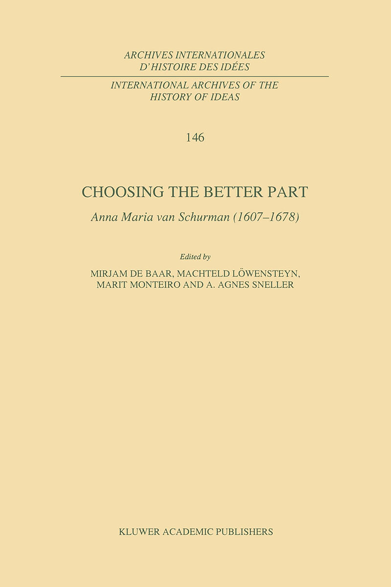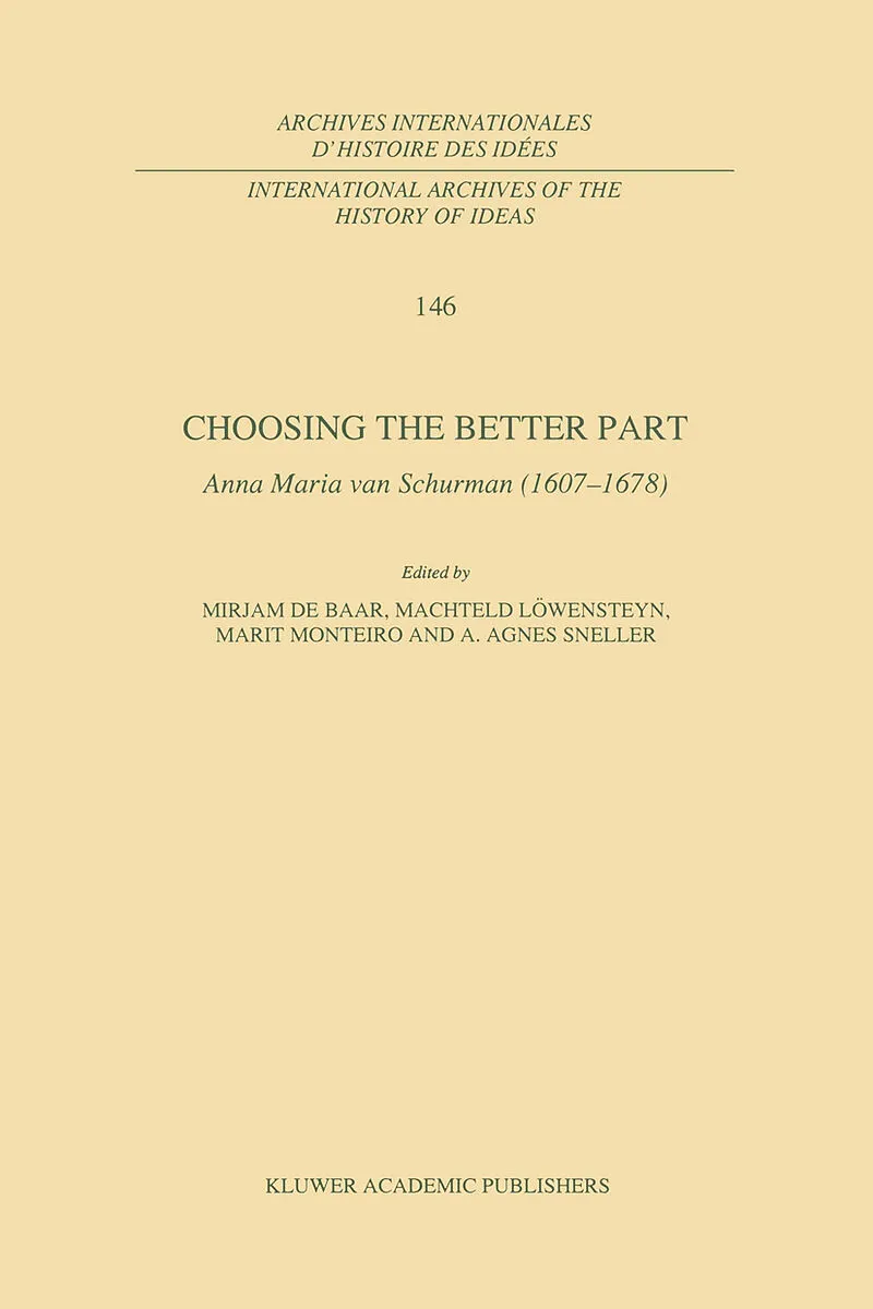 Anna Maria van Schurman was in more than one aspect an unconventional woman in her own lifetime. As a gifted scholar in many foreign and ancient languages, as well as in philosophy and theology, she corresponded with other learned men and women all over Europ...