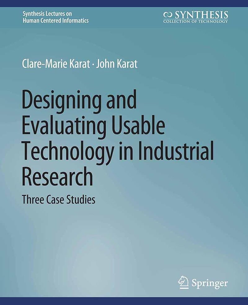 This book is about HCI research in an industrial research setting. It is based on the experiences of two researchers at the IBM T. J. Watson Research Center. Over the last two decades, Drs. John and Clare-Marie Karat have conducted HCI research to create inno...This book is about HCI research in an industrial research setting. It is based on the experiences of two researchers at the IBM T. J. Watson Research Center. Over the last two decades, Drs. John and Clare-Marie Karat have conducted HCI research to create innovative usable technology for users across a variety of domains. We begin the book by introducing the reader to the context of industrial research as well as a set of common themes or guidelines to consider in conducting HCI research in practice. Then case study examples of HCI approaches to the design and evaluation of usable solutions for people are presented and discussed in three domain areas: - item Conversational speech technologies, - item Personalization in eCommerce, and - item Security and privacy policy management technologies In each of the case studies, the authors illustrate and discuss examples of HCI approaches to design and evaluation that worked well and those that did not. They discuss what was learned over time about different HCI methods in practice, and changes that were made to the HCI tools used over time. The Karats discuss trade-offs and issues related to time, resources, and money and the value derived from different HCI methods in practice. These decisions are ones that need to be made regularly in the industrial sector. Similarities and differences with the types of decisions made in this regard in academia will be discussed. The authors then use the context of the three case studies in the three research domains to draw insights and conclusions about the themes that were introduced in the beginning of the book. The Karats conclude with their perspective about the future of HCI industrial research. Table of Contents: Introduction: Themes and Structure of the Book / Case Study 1: Conversational Speech Technologies: Automatic Speech Recognition (ASR) / Case Study 2: Personalization in eCommerce / Case Study 3: Security and Privacy Policy Management Technologies / Insights and Conclusions / The Future of Industrial HCI Research