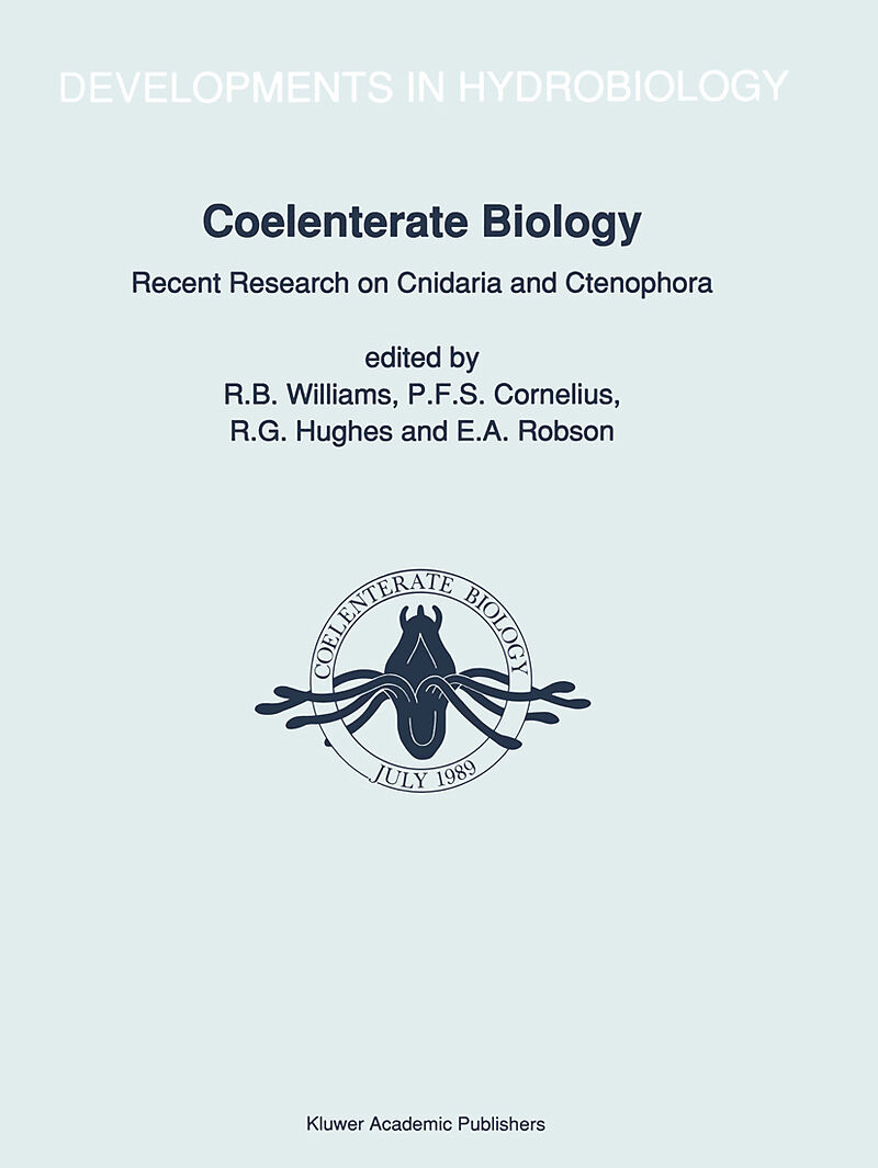 I. Cellular Biology.- The extracellular matrix (mesoglea) of hydrozoan jellyfish and its ability to support cell adhesion and spreading.- Effects of tumor promoters and diacylglycerol on the transdifferentiation of striated muscle cells of the medusa Podocoryne carnea to RF-amide positive nerve cells.- The physiology of feeding in the ctenophore Pleurobrachia pileus.- Behavioural and ultrastructural studies on the sedentary platyctenean ctenophore Vallicula multifor-mis.- Problems of being a cell in a soft body.- An ultrastructural study of the polyp and strobila of Atorella japonica (Cnidaria, Coronatae) with respect to muscles and nerves.- Rhopalium development in Aurelia aurita ephyrae.- II. Developmental Biology.- Bud formation in the scyphozoan Cassiopea andromeda: epithelial dynamics and fate map.- Basic morphogenetic processes in Hydrozoa and their evolutionary implications: an exercise in rational taxonomy.- Regression and replacement of hydranths in thecate hydroids, and the structure of hydrothecae.- Differentiation of the interstitial cell line in hydrozoan planulae. I. Repopulation of epithelial planulae.- A low-molecular weight factor from colonial hydroids affects body proportioning and cell differentiation.- Polyp regeneration from isolated tentacles of Aurelia scyphistomae: a role for gating mechanisms and cell division.- III. Reproduction.- Larval development and survivorship in the corals Favia favus and Platygyra lamellina.- Spawning of hermatypic corals in Bermuda: a pilot study.- Annual cycle of gametogenesis and spawning in a tropical zoanthid, Protopalythoa sp..- Reproduction and developmental pathways of Red Sea Xeniidae (Octocorallia, Alcyonacea).- Sperm morphology of scleractinians from the Caribbean.- Embryonic and larval development of the sea anemone Haliplanella lineata from Japan.- Developmental pathways of anthozoans.- The life cycle of Laodicea indica (Laodiceidae, Leptomedusae, Cnidaria).- Notes on the morphology, ecology and life cyles of Fukaurahydra anthoformis and Hataia parva (Hydrozoa, Athecata).- The ampullae and medusae of the calcareous hydrozoan Millepora complanata.- Observations on the anatomy, behaviour, reproduction and life cycle of the cubozoan Carybdea sivickisi.- Distributional ecology and behaviour of the early life stages of the box-jellyfish Chironex fleckeri.- Oocyte development in four species of scyphomedusa in the northern Adriatic Sea.- Reproduction of Pelagia noctiluca in the central and northern Adriatic Sea.- IV. Ecology.- The growth patterns of some hydroids that are obligate epiphytes of seagrass leaves.- The growth and degeneration of the hydroid Sertularia perpusilla, an obligate epiphyte of leaves of the seagrass Posidonia oceanica.- The settlement and growth of Sertularia cupressina (Hydrozoa, Sertulariidae) in Langstone Harbour, Hampshire, UK.- Abundance and distribution of hydroids in a mangrove ecosystem at Twin Cays, Belize, Central America.- The adaptive pattern of growth and reproduction of the colonial hydroid Clavopsella michaeli.- Fission and the dynamics of genets and ramets in clonal cnidarian populations.- Distribution and adaptive strategies of alcyonacean corals in Nanwan Bay, Taiwan.- Effects of water movement on prey capture and distribution of reef corals [synopsis only].- How many damaged corals in Red Sea reef systems? A quantitative survey.- The effects of Acanthaster planci predation on populations of two species of massive coral.- Locomotion, asexual reproduction, and killing of corals by the corallimorpharian Corynactis califor-nica.- Comparative ecology of subtidal actiniarians from the coasts of California and the Gulf of Maine, USA.- Coral-crab association: a compact domain of a multilevel trophic system.- The symbiotic relationship between the hydrocoral Millepora dichotoma and the barnacle Savignium milleporum.- Chemical recognition by hermit crabs of their symbiotic sea anemones and a predatory octopus.- Mutualism between the antipatharian Antipathes fiordensis and the ophiuroid Astrobrachion constrictum in New Zealand fiords.- Predation on Cnidaria by vertebrates other than fishes.- V. Pelagic Coelenterates.- Western Atlantic midwater hydrozoan and scyphozoan medusae: in situ studies using manned submersibles.- Swimming movements of ctenophores, and the mechanics of propulsion by ctene rows.- Co-occurrence of hippopodiid siphonophores and their potential prey.- A review of cnidarians and ctenophores feeding on competitors in the plankton.- The role of prey stratification in the predation pressure by the cydippid ctenophore Mertensia ovum in the Barents Sea.- Hydromedusae of the Mediterranean Sea.- Vertical distribution of epipelagic siphonophores at the confluence between Benguela waters and the Angola Current over 48 hours.- Attraction of Aurelia and Aequorea to prey.- VI. Endosymbiosis.- Amino acids as a nitrogen source for Chlorella symbiotic with green hydra.- A review of some physiological and evolutionary aspects of body size and bud size of Hydra.- The stable level of coral primary production in a wide light range.- Mechanisms of amplification of photosynthetically active radiation in the symbiotic deep-water coral Leptoseris fragilis.- VII. Skeletogenesis.- The nature of the skeleton and skeletogenic tissues in the Cnidaria.- Chemistry and structure of skeletal growth rings in the black coral Antipathes fiordensis (Cnidaria, Antipatharia).- VIII. Palaeontology.- Principles of early ontogeny in the rugose corals: a critical review.- The Bainbridgia-Dualipora association (Cnidaria, Tabulata): palaeogeographical and palaeo-ecological implications.- IX. Evolution and Systematics.- Crossing-experiments between Japanese populations of three hydrozoans symbiotic with bivalves.- The variation of Halocordyle disticha (Cnidaria, Athecata) from the Brazilian coast: an environmen- tal indicator species?.- Samuraia tabularasa gen. nov., sp. nov. (Cnidaria, Hydrozoa, Hydrocorynidae), an intertida