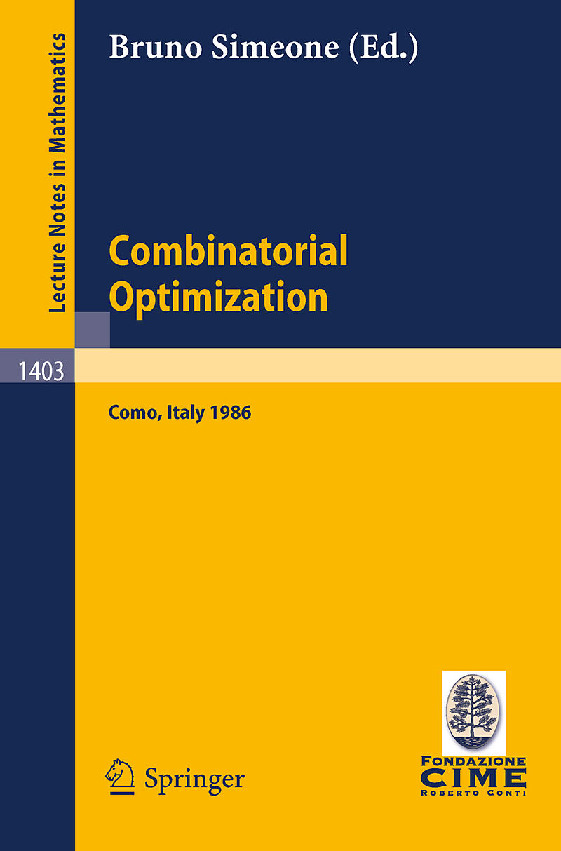 The C.I.M.E. Summer School at Como in 1986 was the first in that series on the subject of combinatorial optimization. Situated between combinatorics, computer science and operations research, the subject draws on a variety of mathematical methods to deal with...
