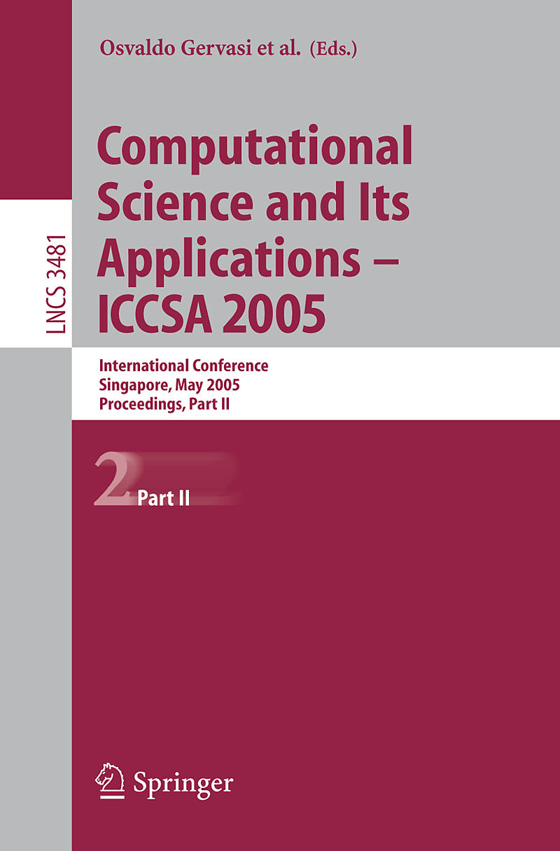 The four volume set assembled following The 2005 International Conference on Computational Science and its Applications, ICCSA 2005, held in Suntec International Convention and Exhibition Centre, Singapore, from 9 May 2005 till 12 May 2005, represents the ?ne...The four volume set assembled following The 2005 International Conference on Computational Science and its Applications, ICCSA 2005, held in Suntec International Convention and Exhibition Centre, Singapore, from 9 May 2005 till 12 May 2005, represents the ?ne collection of 540 refereed papers selected from nearly 2,700 submissions. Computational Science has ?rmly established itself as a vital part of many scienti?c investigations, a?ecting researchers and practitioners in areas ranging from applications such as aerospace and automotive, to emerging technologies such as bioinformatics and nanotechnologies, to core disciplines such as ma- ematics, physics, and chemistry. Due to the shear size of many challenges in computational science, the use of supercomputing, parallel processing, and - phisticated algorithms is inevitable and becomes a part of fundamental t- oretical research as well as endeavors in emerging ?elds. Together, these far reaching scienti?c areas contribute to shape this Conference in the realms of state-of-the-art computational science research and applications, encompassing the facilitating theoretical foundations and the innovative applications of such results in other areas.
