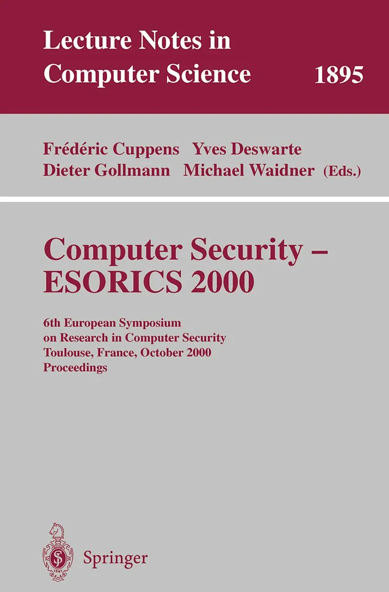 his book presents the refereed proceedings of the 6th European Symposium on Research in Computer Security, ESORICS 2000, held in Toulouse, France in October 2000. The 19 revised full papers presented were carefully reviewed and selected from a total of 75 sub...