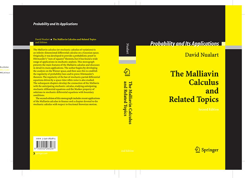 The Malliavin calculus is an infinite-dimensional differential calculus on a Gaussian space, developed to provide a probabilistic proof to Hörmander's sum of squares theorem but has found a range of applications in stochastic analysis. This book presents the ...