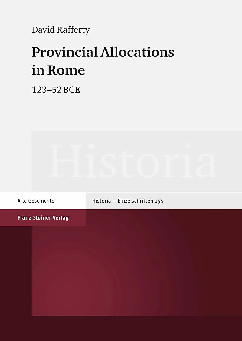 This study is the first comprehensive treatment of the provincial allocations system in the late Roman Republic, between the provincial law carried by Gaius Gracchus in 123 BCE and that carried by Pompeius Magnus in 52 BCE. It considers the actual process of ...