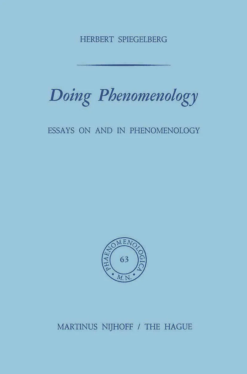 Substantial encouragement for this volume came from the editors and readers of the Studies for Phenomenological and Existential Philosophy (SPEP) at Northwestern University Press. But its publi cation has been made possible only by the unqualified and un ab...Substantial encouragement for this volume came from the editors and readers of the Studies for Phenomenological and Existential Philosophy (SPEP) at Northwestern University Press. But its publi cation has been made possible only by the unqualified and un abridged acceptance of the Editorial Board of Phaenomen%gica, which at the time was still headed by its founder, the late Professor H. L. Van Breda, who welcomed the manuscript most generously. This makes his untimely passing even more grievous to me. The stylistic copy editing and proof reading were handled ef ficiently by Ruth Nichols Jackson, secretary of the Philosophy Department. In the proof reading I also had the able help of my colleague Stanley Paulson. I dedicate this book to the memory of my late brother, Dr. chern. Erwin Spiegelberg, at the time of his death assistant professor at the University of Rio de Janeiro, who preceded me by two years in emigrating from Nazi Germany. When in 1938 he put an end to his life in an apparent depression, he also did so in order not to become a burden to his brothers, who were on the point of following him. Whatever I, more privileged in health and in opportunities in the country of my adoption, have been able to do and achieve since then has been done with a sense of a debt to him and of trying to live and work for him too.