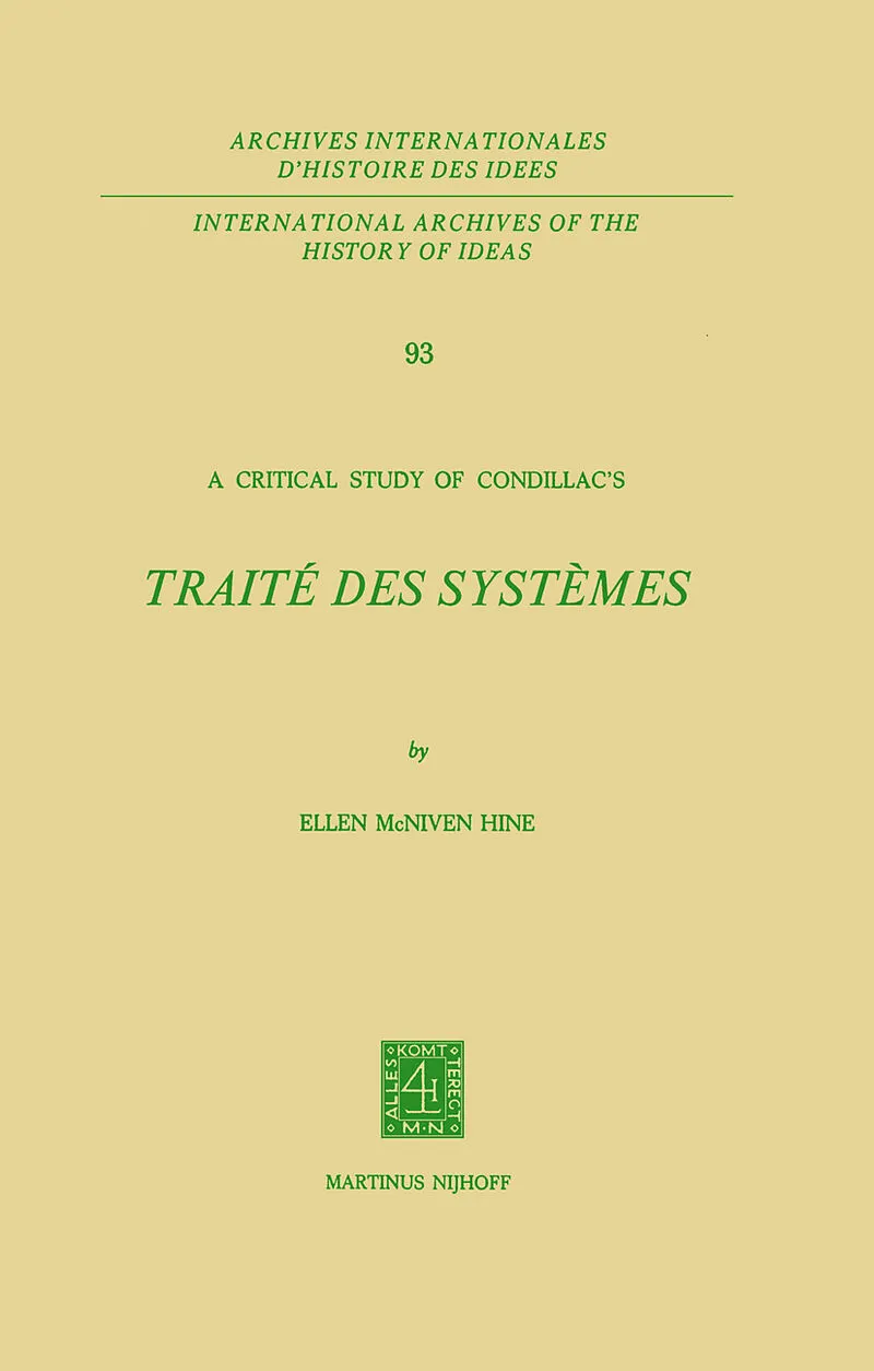 The Traite des systemes is a milestone in the intellectual history of the eighteenth century. This is a study of its content, structure, sources and importance. It includes a discussion of Condillac's analysis of good and bad systems, the adequacy of his know...