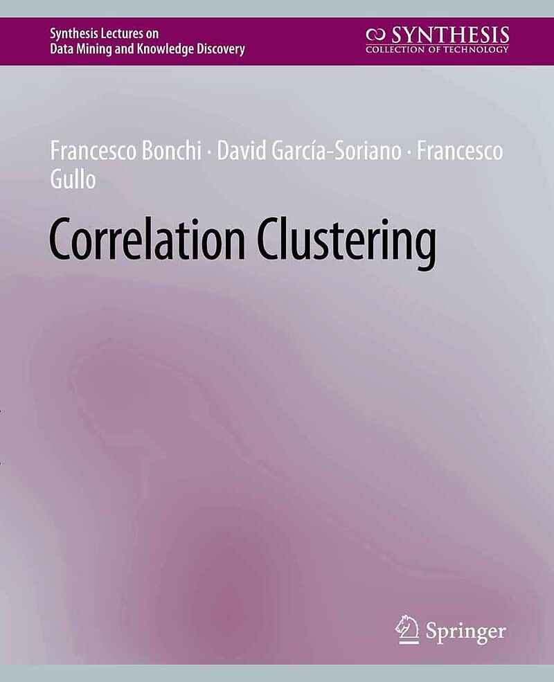 Given a set of objects and a pairwise similarity measure between them, the goal of correlation clustering is to partition the objects in a set of clusters to maximize the similarity of the objects within the same cluster and minimize the similarity of the obj...Given a set of objects and a pairwise similarity measure between them, the goal of correlation clustering is to partition the objects in a set of clusters to maximize the similarity of the objects within the same cluster and minimize the similarity of the objects in different clusters. In most of the variants of correlation clustering, the number of clusters is not a given parameter; instead, the optimal number of clusters is automatically determined. Correlation clustering is perhaps the most natural formulation of clustering: as it just needs a definition of similarity, its broad generality makes it applicable to a wide range of problems in different contexts, and, particularly, makes it naturally suitable to clustering structured objects for which feature vectors can be difficult to obtain. Despite its simplicity, generality, and wide applicability, correlation clustering has so far received much more attention from an algorithmic-theory perspective than from the data-mining community. The goal of this lecture is to show how correlation clustering can be a powerful addition to the toolkit of a data-mining researcher and practitioner, and to encourage further research in the area.