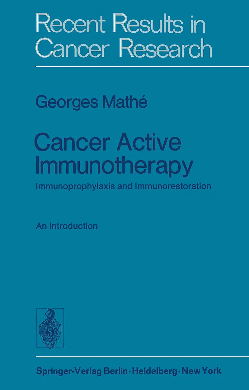 I would like to thank all my co-workers who have collaborated with me, from 1963 until now, in biological and clinical research in the field of cancer active immunotherapy, of its immuno prevention and immunorestoration. They will often be quoted in this boo...I would like to thank all my co-workers who have collaborated with me, from 1963 until now, in biological and clinical research in the field of cancer active immunotherapy, of its immuno prevention and immunorestoration. They will often be quoted in this book. I am particularly grateful to those who have helped me to write it by reviewing some chapters: D. BELPOMME, J. F. DOR~, IRENE FLORENTIN, A. GOUTNER, I. J. Hm, R. HUCHET and MARIE-CHRISTINE SIMMLER. I also thank NICOLE VRIZ, MARIE-CLAUDE SCHNEIDER, FENELLARIsELEY and M. JUVET for their willing and efficient co-operation in the preperation of the manuscript. I am finally grateful to all authors of books or articles who authorized me to reproduce their figures or tables. Paris, April 1976 G. MAT~ Contents Chapter 1. Introduction and Definitions 1 Chapter 2. Biological Basis: Tumour Associated Antigens, the Immune Machinery and Its Behaviour Concerning Cancer Cells 5 2. 1. Tumour-Associated Antigens 5 2. 2. The Immune Machinery 19 2. 2. 1. Humoral Mediated Immunity and Cell Mediated Immunity 19 2. 2. 2. T- and B-Lymphocyte and Monocyte Differen tiation 22 2. 2. 3. T-Lymphocyte Functions 25 2. 2. 4. B-Lymphocyte Functions 30 2. 2. 5. Macrophage Functions 31 2. 2. 6. K-Cell Function 32 2. 3. The Immune Machinery and Cancer Cells 33 2. 3. 1. Mechanisms Involved in Tumour Cell Rejec tion 33 2. 3. 1. 1. In vivo Evidence for Tumour Immunity 33 2. 3. 1. 2.