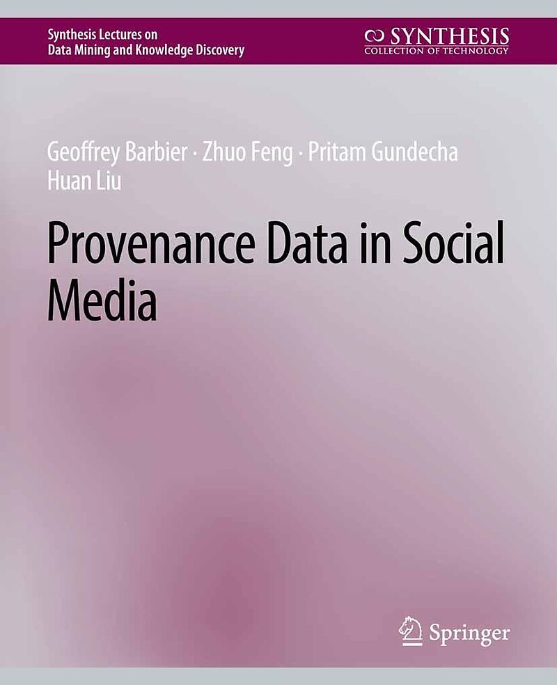 Social media shatters the barrier to communicate anytime anywhere for people of all walks of life. The publicly available, virtually free information in social media poses a new challenge to consumers who have to discern whether a piece of information publish...Social media shatters the barrier to communicate anytime anywhere for people of all walks of life. The publicly available, virtually free information in social media poses a new challenge to consumers who have to discern whether a piece of information published in social media is reliable. For example, it can be difficult to understand the motivations behind a statement passed from one user to another, without knowing the person who originated the message. Additionally, false information can be propagated through social media, resulting in embarrassment or irreversible damages. Provenance data associated with a social media statement can help dispel rumors, clarify opinions, and confirm facts. However, provenance data about social media statements is not readily available to users today. Currently, providing this data to users requires changing the social media infrastructure or offering subscription services. Taking advantage of social media features, research in this nascent field spearheads the search for a way to provide provenance data to social media users, thus leveraging social media itself by mining it for the provenance data. Searching for provenance data reveals an interesting problem space requiring the development and application of new metrics in order to provide meaningful provenance data to social media users. This lecture reviews the current research on information provenance, explores exciting research opportunities to address pressing needs, and shows how data mining can enable a social media user to make informed judgements about statements published in social media. Table of Contents: Information Provenance in Social Media / Provenance Attributes / Provenance via Network Information / Provenance Data