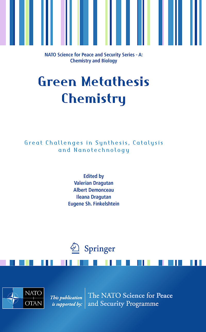 An outstanding international scientific event in the field of metathesis chemistry, the NATO ASI "Green Metathesis Chemistry: Great Challenges in Synthesis, Catalysis and Nanotechnology" has been recently organized in Bucharest, Romania (July 21- August 2, 20...An outstanding international scientific event in the field of metathesis chemistry, the NATO ASI "Green Metathesis Chemistry: Great Challenges in Synthesis, Catalysis and Nanotechnology" has been recently organized in Bucharest, Romania (July 21- August 2, 2008). Numerous renowned scientists, young researchers and students, convened for two weeks to present and debate on the newest trends in alkene metathesis and identify future perspectives in this fascinating area of organic, organometallic, catalysis and polymer chemistry with foreseen important applications in materials science and technology. Following the fruitful practice of NATO Advanced Study Institutes, selected contributions covering plenary lectures, short communications and posters have been compiled in this special volume dedicated to this successful convention on green metathesis chemistry.