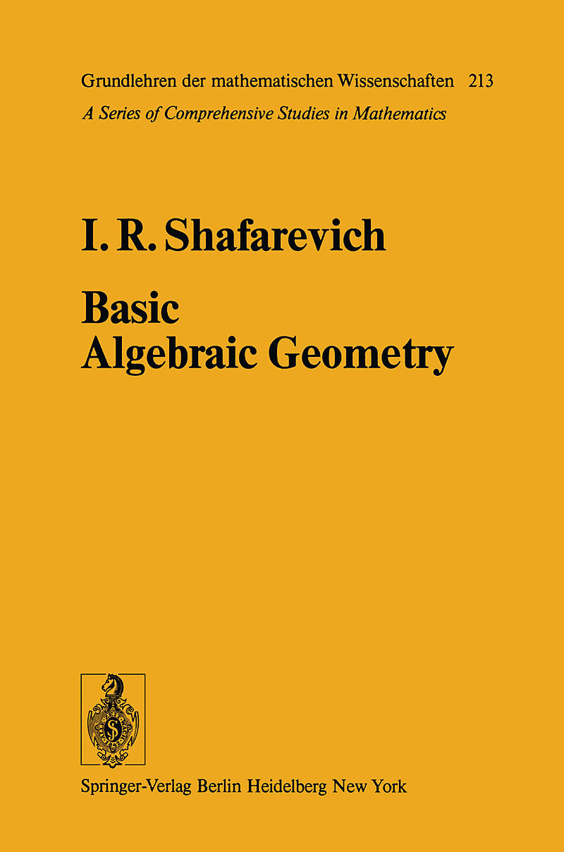 I. Algebraic Varieties in a Projective Space.- I. Fundamental Concepts.- § 1. Plane Algebraic Curves.- 1. Rational Curves.- 2. Connections with the Theory of Fields.- 3. Birational Isomorphism of Curves.- Exercises.- §2. Closed Subsets of Affine Spaces.- 1. Definition of Closed Subset.- 2. Regular Functions on a Closed Set.- 3. Regular Mappings.- Exercises.- § 3. Rational Functions.- 1. Irreducible Sets.- 2. Rational Functions.- 3. Rational Mappings.- Exercises.- § 4. Quasiprojective Varieties.- 1. Closed Subsets of a Projective Space.- 2. Regular Functions.- 3. Rational Functions.- 4. Examples of Regular Mappings.- Exercises.- § 5. Products and Mappings of Quasiprojective Varieties.- 1. Products.- 2. Closure of the Image of a Projective Variety.- 3. Finite Mappings.- 4. Normalization Theorem.- Exercises.- § 6. Dimension.- 1. Definition of Dimension.- 2. Dimension of an Intersection with a Hypersurface.- 3. A Theorem on the Dimension of Fibres.- 4. Lines on Surfaces.- 5. The Chow Coordinates of a Projective Variety.- Exercises.- II. Local Properties.- §1. Simple and Singular Points.- 1. The Local Ring of a Point.- 2. The Tangent Space.- 3. Invariance of the Tangent Space.- 4. Singular Points.- 5. The Tangent Cone.- Exercises.- §2. Expansion in Power Series.- 1. Local Parameters at a Point.- 2. Expansion in Power Series.- 3. Varieties over the Field of Real and the Field of Complex Numbers 88 Exercises.- § 3. Properties of Simple Points.- 1. Subvarieties of Codimension 1.- 2. Smooth Subvarieties.- 3. Factorization in the Local Ring of a Simple Point.- Exercises.- § 4. The Structure of Birational Isomorphisms.- 1. The ?-Process in a Projective Space.- 2. The Local ?-Process.- 3. Behaviour of Subvarieties under a ?-Process.- 4. Exceptional Subvarieties.- 5. Isomorphism and Birational Isomorphism.- Exercises.- §5. Normal Varieties.- 1. Normality.- 2. Normalization of Affine Varieties.- 3. Ramification.- 4. Normalization of Curves.- 5. Projective Embeddings of Smooth Varieties.- Exercises.- III. Divisors and Differential Forms.- § 1. Divisors.- 1. Divisor of a Function.- 2. Locally Principal Divisors.- 3. How to Shift the Support of a Divisor Away from Points.- 4. Divisors and Rational Mappings.- 5. The Space Associated with a Divisor.- Exercises.- § 2. Divisors on Curves.- 1. The Degree of a Divisor on a Curve.- 2. Bezout's Theorem on Curves.- 3. Cubic Curves.- 4. The Dimension of a Divisor.- Exercises.- §3. Algebraic Groups.- 1. Addition of Points on a Plane Cubic Curve.- 2. Algebraic Groups.- 3. Factor Groups. Chevalley's Theorem.- 4. Abelian Varieties.- 5. Picard Varieties.- Exercises.- §4. Differential Forms.- 1. One-Dimensional Regular Differential Forms.- 2. Algebraic Description of the Module of Differentials.- 3. Differential Forms of Higher Degrees.- 4. Rational Differential Forms.- Exercises.- § 5. Examples and Applications of Differential Forms.- 1. Behaviour under Mappings.- 2. Invariant Differential Forms on a Group.- 3. The Canonical Class.- 4. Hypersurfaces.- 5. Hyperelliptic Curves.- 6. The Riemann-Roch Theorem for Curves.- 7. Projective Immersions of Surfaces.- Exercises.- IV. Intersection Indices.- §1. Definition and Basic Properties.- 1. Definition of an Intersection Index.- 2. Additivity of the Intersection Index.- 3. Invariance under Equivalence.- 4. End of the Proof of Invariance.- 5. General Definition of the Intersection Index.- Exercises.- §2. Applications and Generalizations of Intersection Indices.- 1. Bezout's Theorem in a Projective Space and Products of Projective Spaces.- 2. Varieties over the Field of Real Numbers.- 3. The Genus of a Smooth Curve on a Surface.- 4. The Ring of Classes of Cycles.- Exercises.- § 3. Birational Isomorphisms of Surfaces.- 1. ?-Processes of Surfaces.- 2. Some Intersection Indices.- 3. Elimination of Points of Indeterminacy.- 4. Decomposition into ?-Processes.- 5. Notes and Examples.- Exercises.- II. Schemes and Varieties.- V. Schemes.- §1. Spectra of Rings.- 1. Definition of a Spectrum.- 2. Properties of the Points of a Spectrum.- 3. The Spectral Topology.- 4. Irreducibility, Dimension.- Exercises.- §2. Sheaves.- 1. Presheaves.- 2. The Structure Presheaf.- 3. Sheaves.- 4. The Stalks of a Sheaf.- Exercises.- §3. Schemes.- 1. Definition of a Scheme.- 2. Pasting of Schemes.- 3. Closed Subschemes.- 4. Reducibility and Nilpotents.- 5. Finiteness Conditions.- Exercises.- § 4. Products of Schemes.- 1. Definition of a Product.- 2. Group Schemes.- 3. Separation.- Exercises.- VI. Varieties.- §1. Definition and Examples.- 1. Definitions.- 2. Vector Bundles.- 3. Bundles and Sheaves.- 4. Divisors and Line Bundles.- Exercises.- § 2. Abstract and Quasiprojective Varieties.- 1. Chow's Lemma.- 2. The ?-Process along a Subvariety.- 3. Example of a Non-Quasiprojective Variety.- 4. Criteria for Projectiveness.- Exercises.- §3. Coherent Sheaves.- 1. Sheaves of Modules.- 2. Coherent Sheaves.- 3. Dévissage of Coherent Sheaves.- 4. The Finiteness Theorem.- Exercises.- III. Algebraic Varieties over the Field of Complex Numbers and Complex Analytic Manifolds.- VII. Topology of Algebraic Varieties.- §1. The Complex Topology.- 1. Definitions.- 2. Algebraic Varieties as Differentiable Manifolds. Orientation.- 3. The Homology of Smooth Projective Varieties.- Exercises.- §2. Connectedness.- 1. Auxiliary Lemmas.- 2. The Main Theorem.- 3. Analytic Lemmas.- Exercises.- § 3. The Topology of Algebraic Curves.- 1. The Local Structure of Morphisms.- 2. Triangulation of Curves.- 3. Topological Classification of Curves.- 4. Combinatorial Classification of Surfaces.- § 4. Real Algebraic Curves.- 1. Involutions.- 2. Proof of Harnack's Theorem.- 3. Ovals of Real Curves.- Exercises.- VIII. Complex Analytic Manifolds.- §1. Definitions and Examples.- 1. Definition.- 2. Factor Spaces.- 3. Commutative Algebraic Groups as Factor Spaces.- 4. Examples of Compact Analytic Manifolds that are not Isomorphic to Algebraic Varieties.- 5. Complex Spaces.- Exe