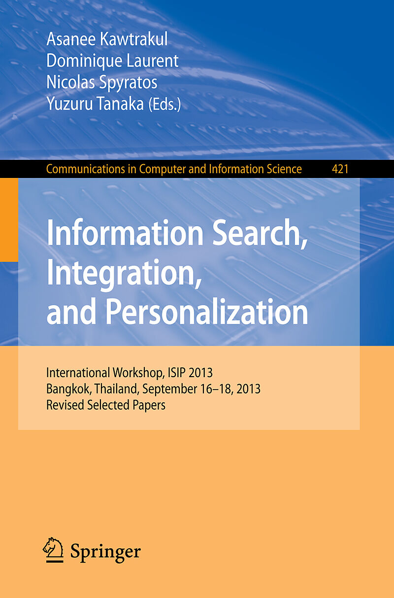 This book constitutes the refereed post-proceedings of the International Workshop on Information Search, Integration and Personalization, ISIP 2013, held in Bangkok, Thailand, in September 2013. The 10 revised full papers presented were carefully reviewed and...