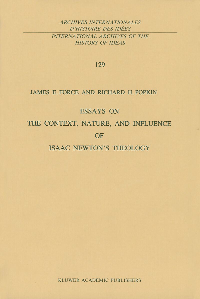 This collection of essays is the fruit of about fifteen years of discussion and research by James Force and me. As I look back on it, our interest and concern with Newton's theological ideas began in 1975 at Washington University in St. Louis. James Force was...