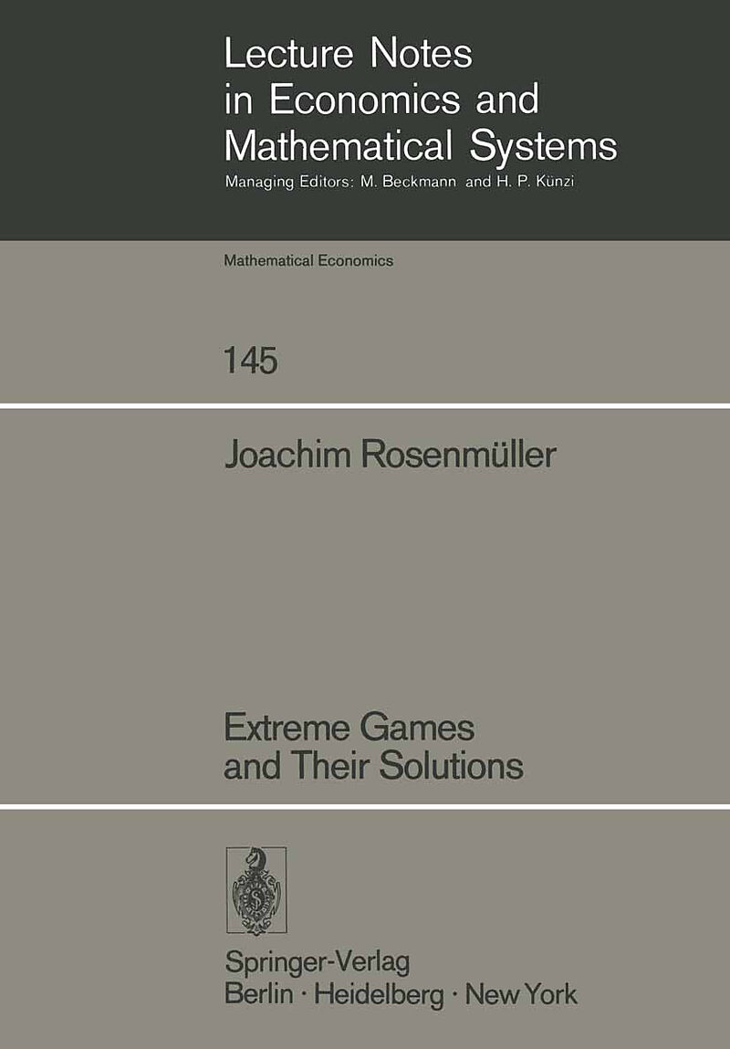 Inhalt Ch 0: Preliminaries.- 1. Introductory remarks.- 2. Notations and Definitions.- CH I: Convex Games.- 1. Representation.- 2. Extreme points of ¢1.- 3. Extreme games and the core.- CH II: Superadditive Games.- 1. Representation.- 2. Extreme points of $ 1.-...