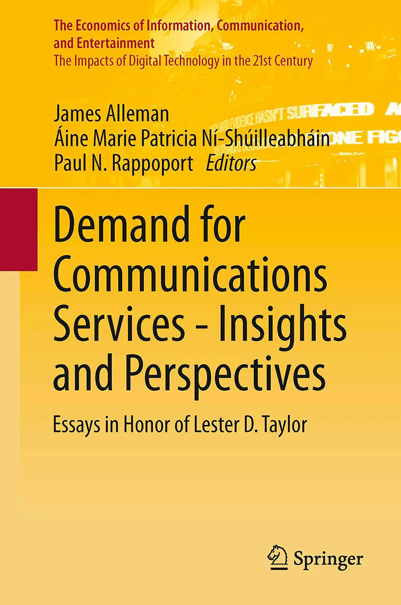 This volume grew out of a conference organized by James Alleman and Paul Rappoport, conducted on October 10, 2011 in Jackson Hole, Wyoming, in honor of the work of Lester D. Taylor, whose pioneering work in demand and market analysis has had profound implicat...