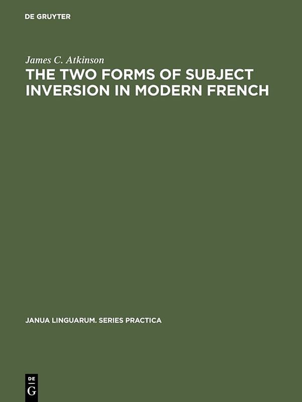 No detailed description available for "The two forms of subject inversion in modern French". Zusammenfassung Frontmatter -- PREFACE -- CONTENTS -- WORKS CITED, WITH ABBREVIATIONS -- I .INTRODUCTION -- II. VS IN STAGED ACTIVITY -- III. IVS vs. VS -- IV. CONCLU...