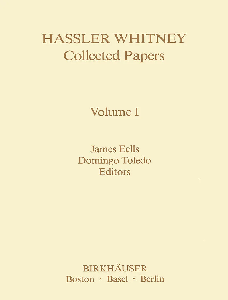 We present here the mathematical papers of Hassler Whitney. This collection contains all the published papers, with the exception of some short announcements that Whitney did not wish to be included. We also include the introduction to his book Geometric Inte...We present here the mathematical papers of Hassler Whitney. This collection contains all the published papers, with the exception of some short announcements that Whitney did not wish to be included. We also include the introduction to his book Geometric Integration Theory, and one previously unpublished manuscript on the four-color problem. The papers are presented under some broad categories: graphs· and combinatorics, differentiable functions and singularities, analytic spaces, manifolds, bundles and characteristic classes, topology and algebraic topology, geometric integration theory. Whitney intended to write an introduction to this collection. Unfortunately he left us no manuscript at the time of his death, May 10, 1989. We had discussed the possibility of using his paper "Moscow 1935 - Topology moving toward America," written for the Centennial of the American Mathematical Society, as part of his introduction to this collection, an idea which he much liked. We therefore include this paper, which contains personal information as well as mathematical reflections, as Whitney's own introduction to these volumes. Whitney's mathematical style, like his personal style, was that of an explorer and pioneer. One of the pictures included in these volumes shows him as a mountain climber. In mathematics, he preferred to work on undeveloped areas: break new ground and build foundations. During the last twenty years of his life he concentrated his efforts on developing an educational system that builds on the natural tendency in children to be explorers.