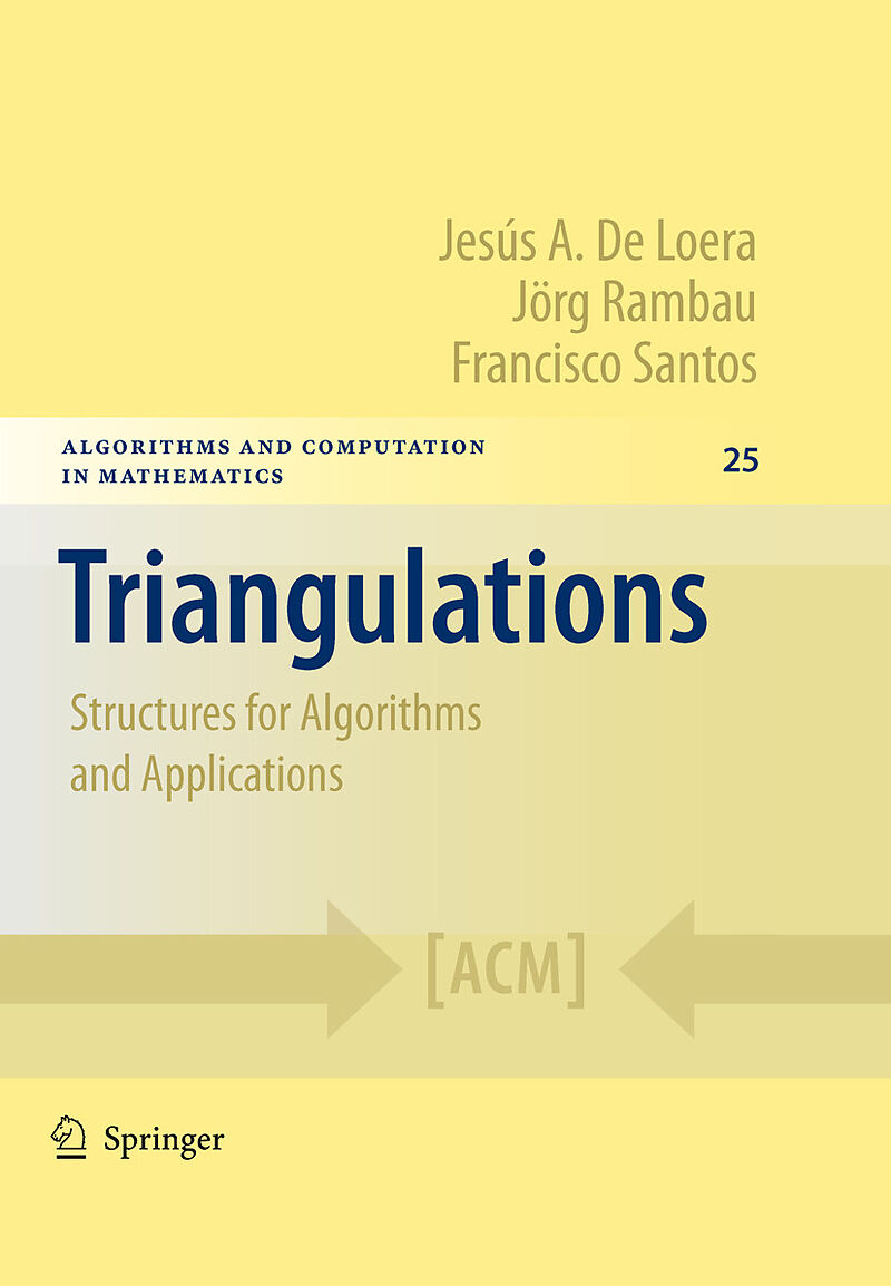 Triangulations appear everywhere, from volume computations and meshing to algebra and topology. This book studies the subdivisions and triangulations of polyhedral regions and point sets and presents the first comprehensive treatment of the theory of secondar...