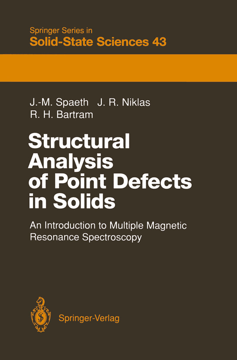Strutural Analysis of Point Defects in Solids introduces the principles and techniques of modern electron paramagnetic resonance (EPR) spectroscopy essentialfor applications to the determination of microscopic defect structures. Investigations of the microsco...Strutural Analysis of Point Defects in Solids introduces the principles and techniques of modern electron paramagnetic resonance (EPR) spectroscopy essentialfor applications to the determination of microscopic defect structures. Investigations of the microscopic and electronic structure, and also correlations with the magnetic propertiesof solids, require various multiple magnetic resonance methods, such as ENDOR and optically detected EPR or ENDOR. This book discusses experimental, technological and theoretical aspects of these techniques comprehensively, from a practical viewpoint, with many illustrative examples taken from semiconductors and other solids. The nonspecialist is informed about the potential of the different methods, while the researcher faced with the task of determining defect structures isprovided with the necessary tools, together with much information on computer-aided methods of data analysis and the principles of modern spectrometer design.