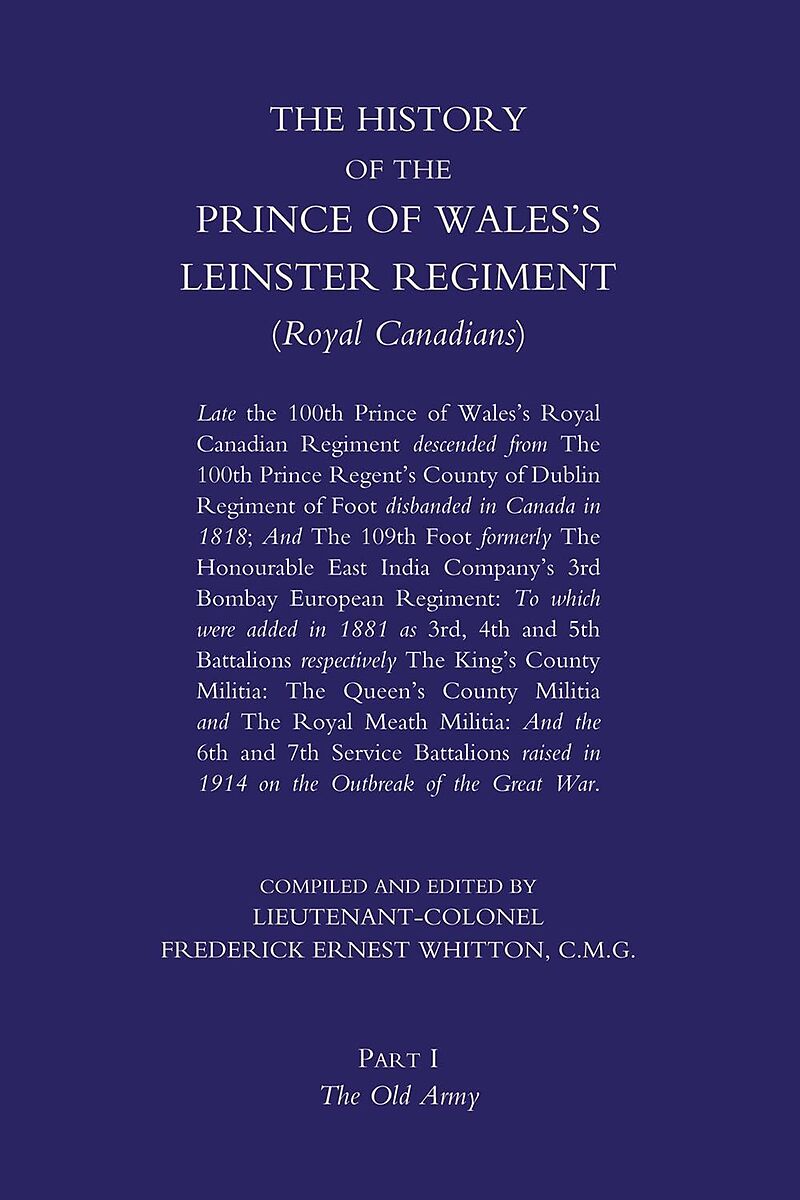 Volume 1 of 2.'The Old Army' is devoted to the regiment's doings before the Great War. It begins with the regiment's origins as the 100th Prince Regent's County of Dublin Regiment of Foot, which was raised to fight in the War of 1812-14 against the young Unit...